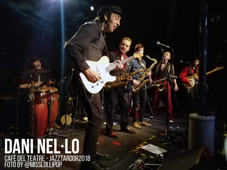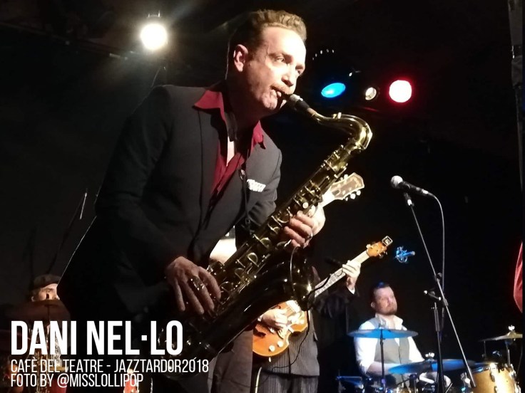 El septeto que protagonizo la última actuación dentro de la vigésimaquinta edición del festival Jazz Tardor de Lleida, puso patas arriba al respetable desde el primer minuto. La sala había estado acondicionada como viene siendo habitual durante el certamen con sus mesas y sillas que tradicionalmente acompañan los conciertos de jazz, pero nada más salir Dani,dejo claro que aquella noche seria de Rhythm & Blues y que las etiquetas selas guardaba para las «mermeladas». Nada que objetar porque si nos remontamos a los inicios del certamen, recordaremos los grandes Bluesmen que pasaron por este escenario. Seguramente que no hacía falta esa explicación porque el virtuosismo del barcelonés ya ha lucido en varias ocasiones en el mismo escenario, con los Mambo Jambo o con cualquier otra formación que se preste y la noche del sábado no iba a ser distinta. Lo que puede parecer una contradicción por haberle visto al menos tres veces este año en el mismo escenario se convierte en una alegría cual manjar apetecible para un buen gourmet al que le encanta repetir y saborear las excelencias de la buena cocina. En el caso deNel·lo funciona de la misma manera y para un servidor me podrían dar dos raciones semanales y creo que no diría basta. En cuanto a su actuación no puedoser objetivo, me une una amistad de casi dos décadas con el saxofonista y la verdad es que pocos peros le encuentro. ¡Es más! Creo que estamos delante del último «Gran Honker» del Rhythm & Blues y no hablo de Catalunya, España ni tan sin quiera Europa…sé que es arriesgado pero el mundo cada vez se estávolviendo más pequeño y las distancias son más cortas, asi que sin más me tiro a la piscina para decir que Dani Nel·lo es el último «Gran Honker»del mundo. ¡Ya está! ya lo he dicho!