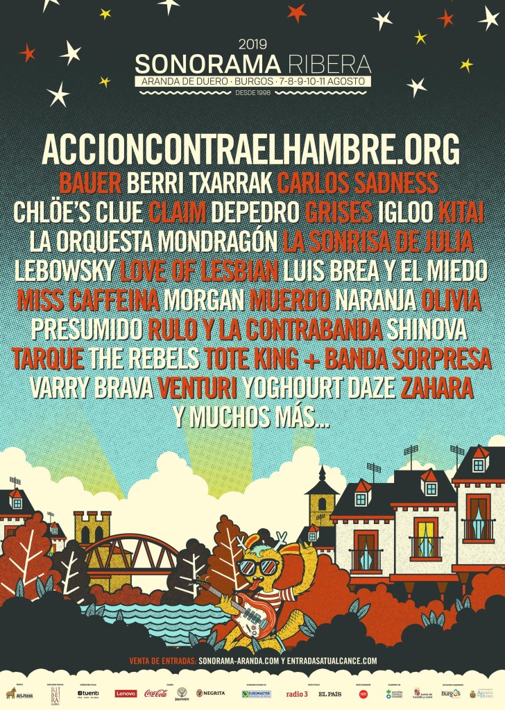 Ya conocemos algunos de los nombres del ecléctico cartel de Sonorama Ribera 2019, entre los que están Love of Lesbian en formato big band, Zahara, Shinova, Miss Caffeina, La Orquesta Mondragón y muchos más. El gran cabeza de cartel de la próxima edición de este año será Accióncontraelhambre.org.