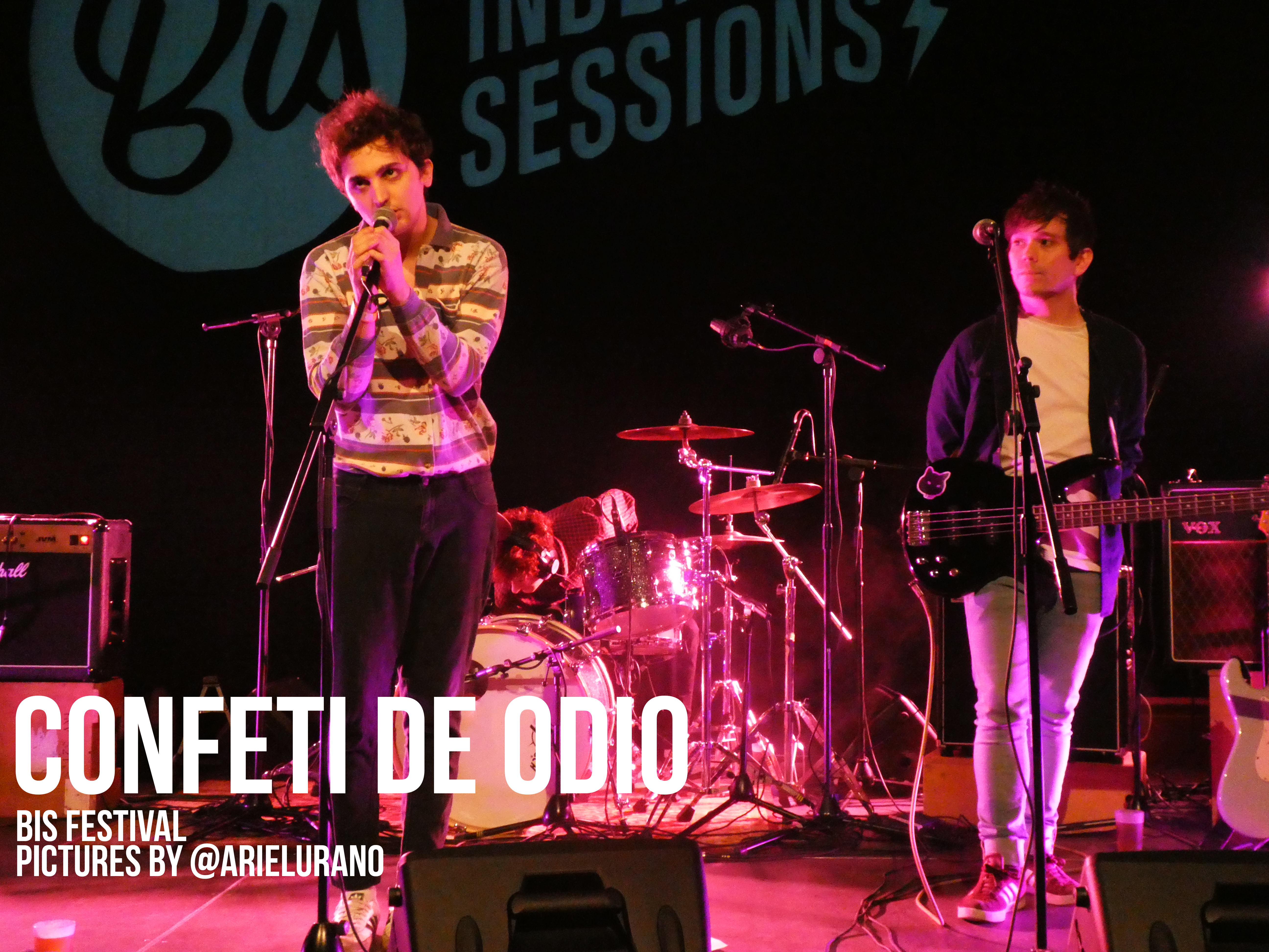 Los siguientes en subir al escenario fueron a la postre una de las grandes sorpresas del festival; Confeti de Odio. Lucas de Laiglesia acompañado por Carlos René al bajo y Juan Pedrayes a la batería, se reveló como un divertido y carismático frontman, ofreciéndonos temas como la autotunera Hasta Romper el Móvil, su nuevo lanzamiento Hechizo -versión de Teen Suicide- y, especialmente, la trilogía formada por el hitazo de enganche inmediato Tu Puta Barba, la divertida Pocos Likes y la melodramática Hoy Será Un Día Horrible. Sorprendió y convenció con sus temas de dos minutos y el magnetismo de sus posturas imposibles al bailar, revelándose como el primer triunfo de la noche y un proyecto a seguir muy de cerca.