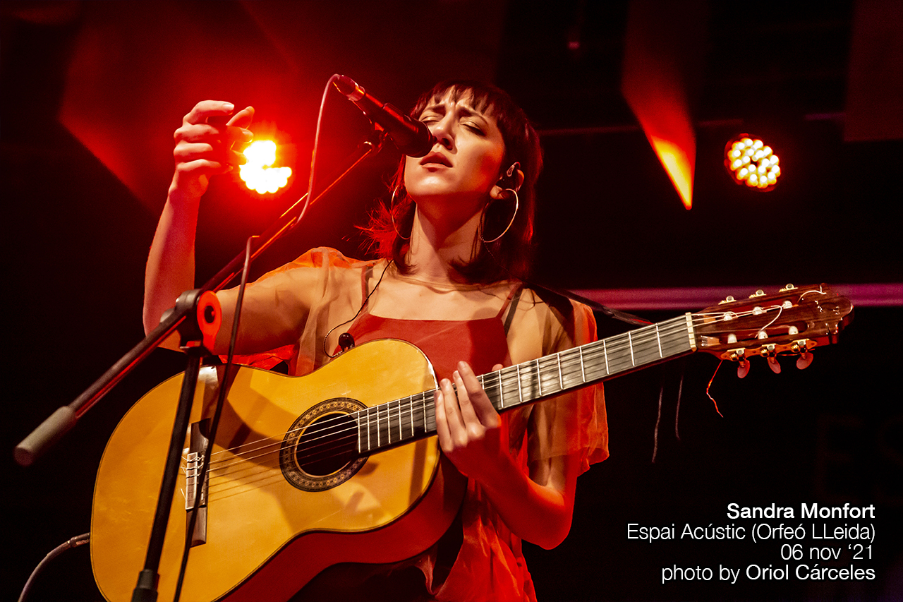 Sandra Monfort llegó al Espai Orfeó de Lleida con un set acústico y un pertinente suplemento vitamínico a base de aparatos electrónicos para revestir su propuesta musical. La cantautora del Pedreguer (Alicante) presentó su último trabajo Niño Reptil Ángel, editado en marzo de este año por el selecto label Hidden Track Records.