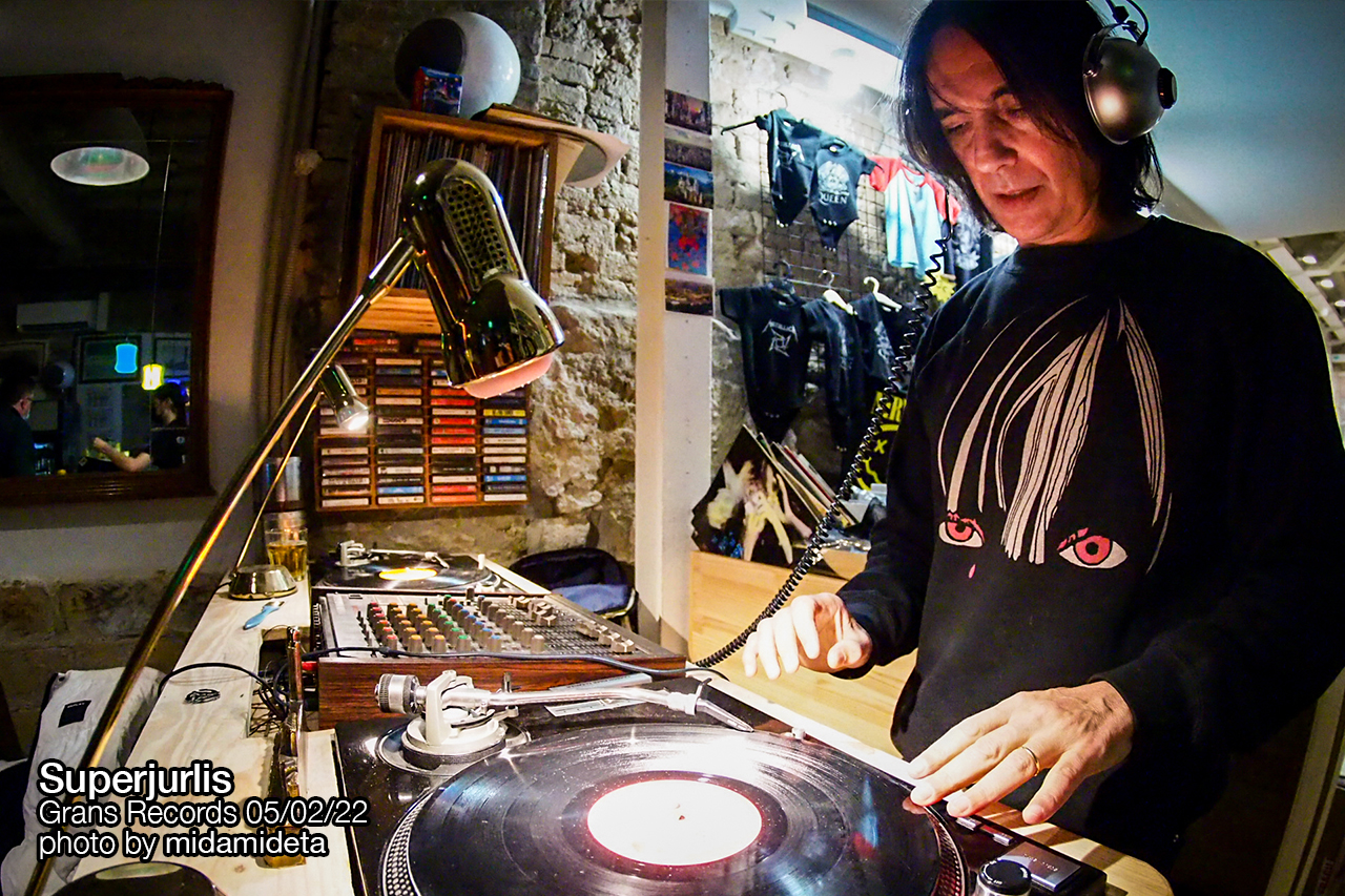 El concierto iba de la mano de una sesión en la tienda de discos Grans Records donde la maestría de Superjurlis, con su habitual solvencia y elegancia a los platos. Ya antes de que empezara a tocar la sala estaba llena de gente, con el warmup musical de Turbolover.