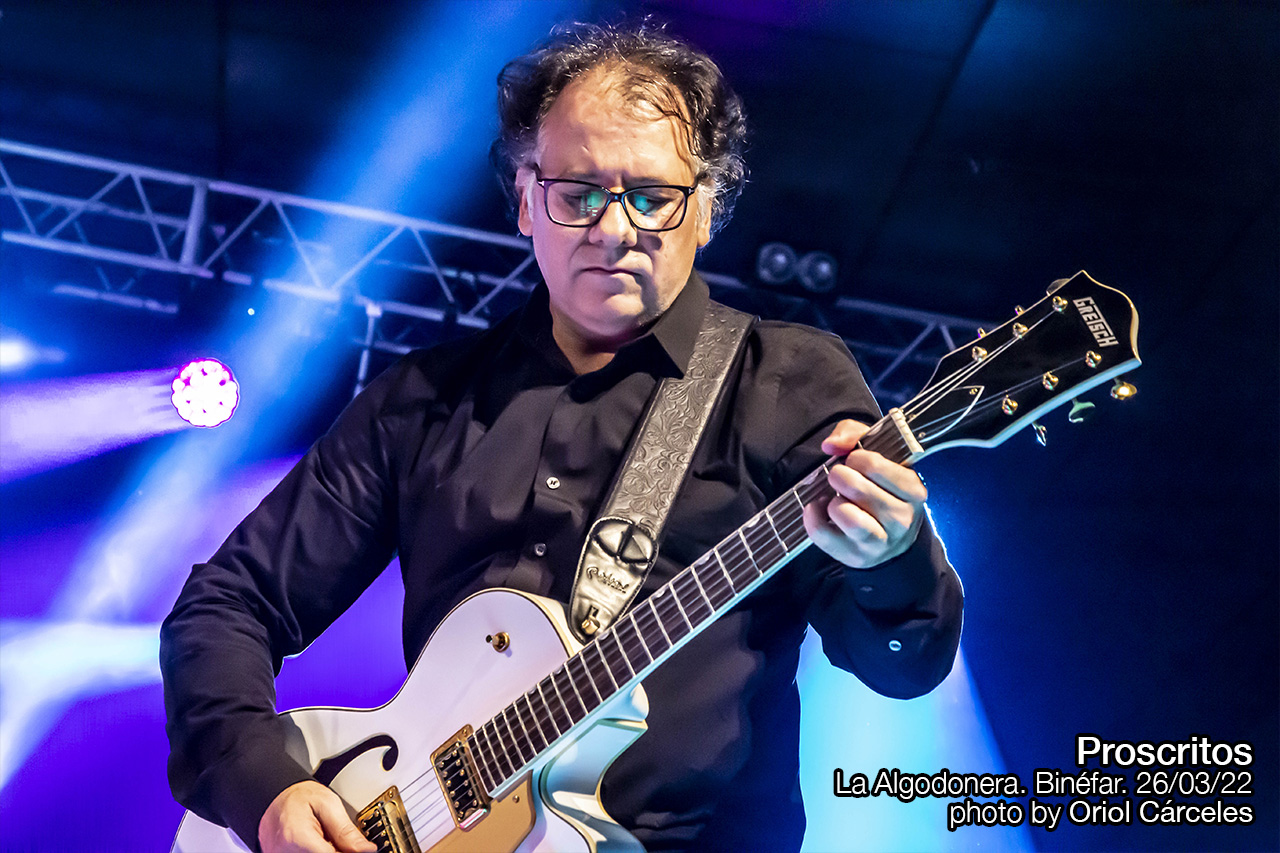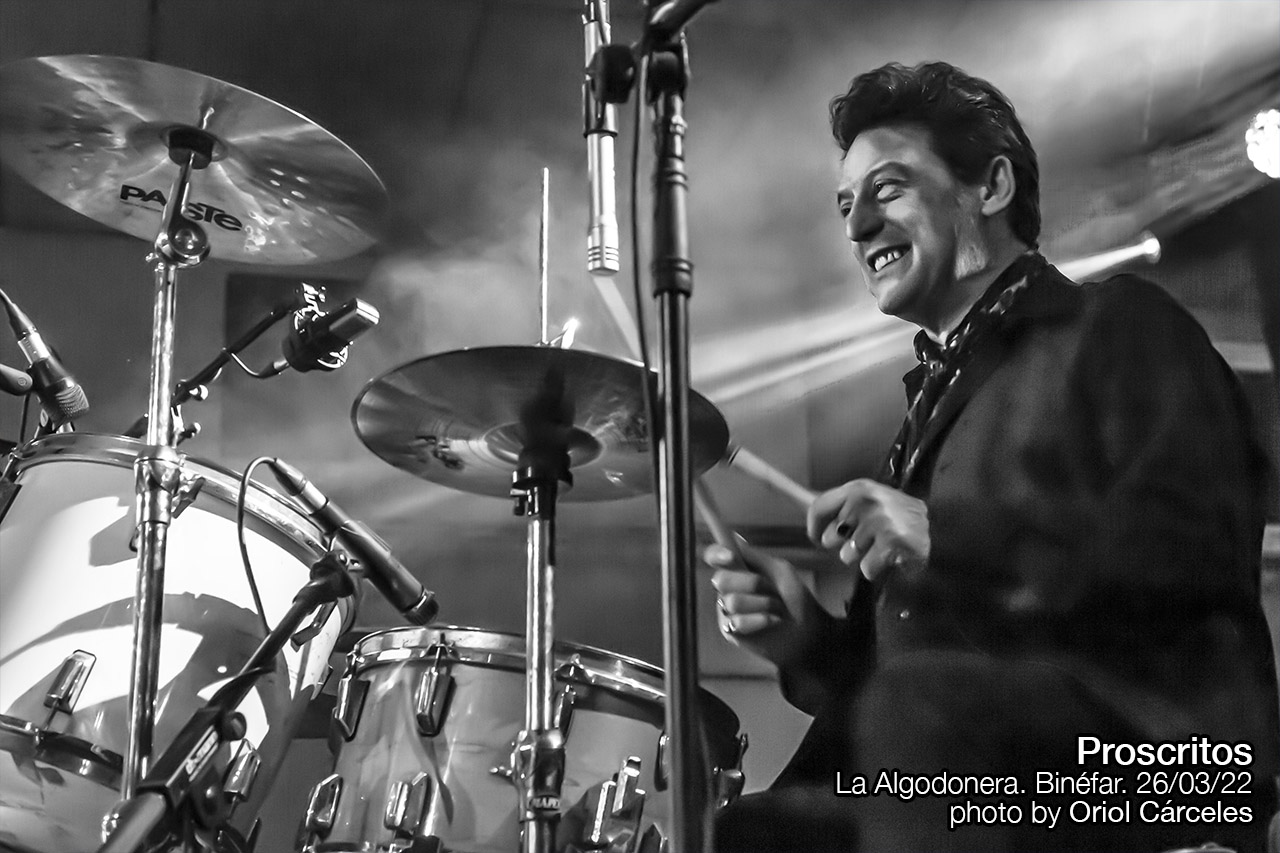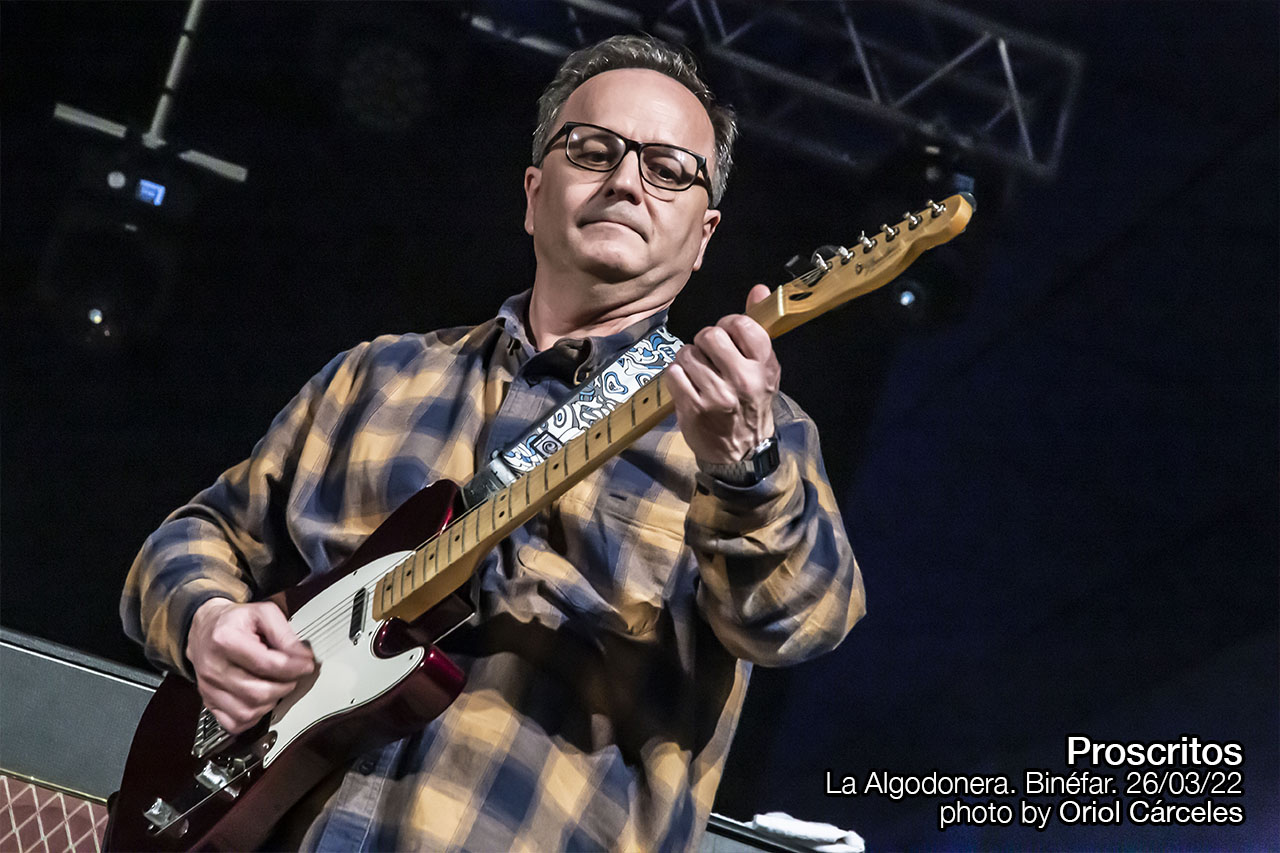 Se dejaron para los bises cuatro versiones de hits infalibles y, por supuesto, esenciales para entender la Historia del Rock: una inédita “Green River”(1969) de Creedence Clearwater Revival que tradujeron allá por 1991 y que, por cosas de la vida, quedó descartada en su momento. Para “Flores muertas”, la mejor adaptación al castellano de “Dead Flowers” del “Sticky Fingers”(1971) de The Rolling Stones, subieron al escenario los guitarristas Joaquín Gibanel y Luis Salvatella, que pertenecieron a Proscritos en diferentes épocas de la vida de la banda. Y ya en el clímax final tocaron una muy notable aproximación a la que podría ser la Canción de las Canciones, o por lo menos una de ellas: “Like A Rolling Stone”(1965) de Bob Dylan se convirtió por obra y gracia de Proscritos en “Como una bala perdida”, fidedigna aproximación al espíritu de la letra original. Y como el muy numeroso y extremadamente entregado público de La Algodonera aún no se quedó satisfecho del todo, les regalaron la declaración de principios “Nacidos para ser salvajes”, traslación de “Born To Be Wild” de Steppenwolf.