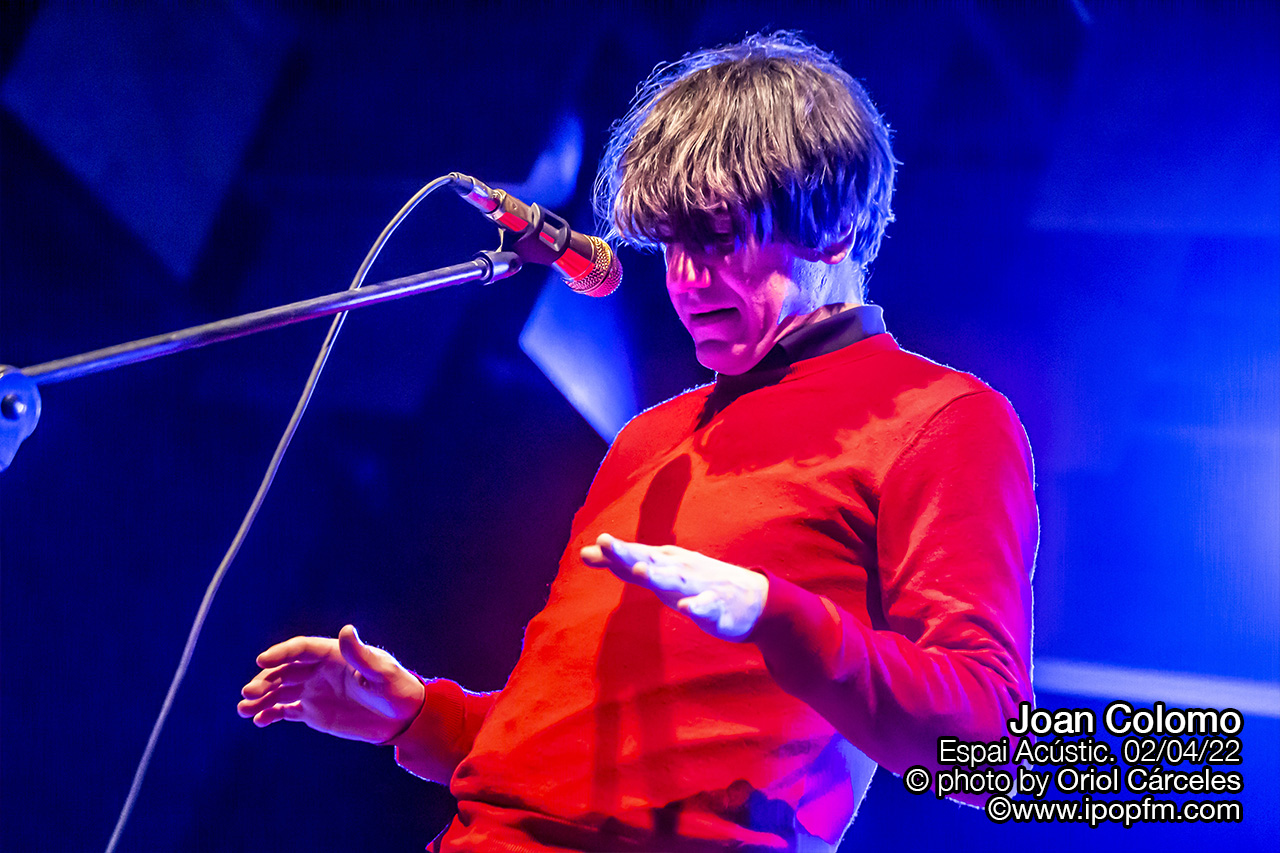 Y los que ya lo hemos disfrutado alguna vez sabemos que Joan Colomo es una mezcla de cantautor anárquico y showman que comulga con el público a través de speechs, dotando al show de contenido. Y así fue advertido el personal presente en el Espai Acústic del Orfeó Lleida. De esto no se advierte en la nota de prensa. Así pues, con un discurso inical y unos loops en el pad que acompañaba al artista dio paso a al último corte del nuevo trabajo, Disc Trist (Bcore, 2021) Avui, una canción calmada y serena que acababa con un final «aparentemente» caótico.