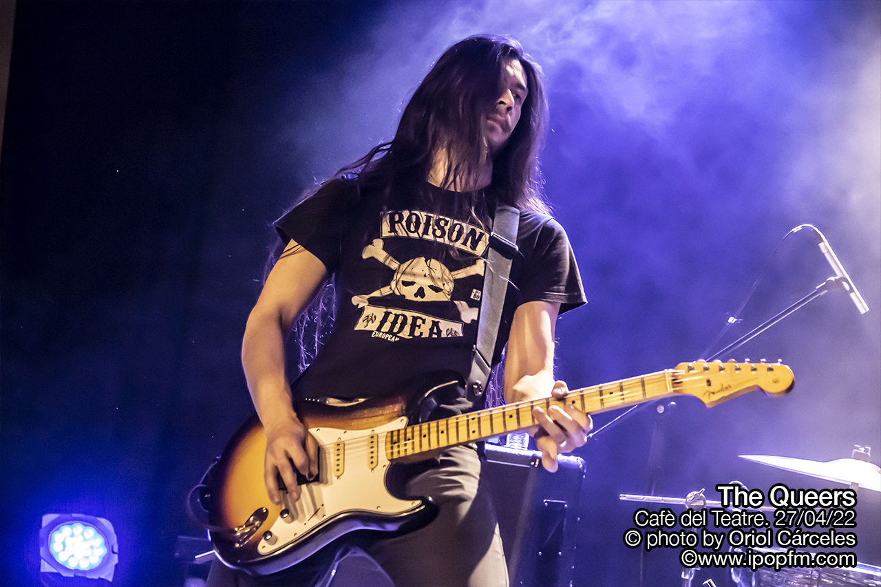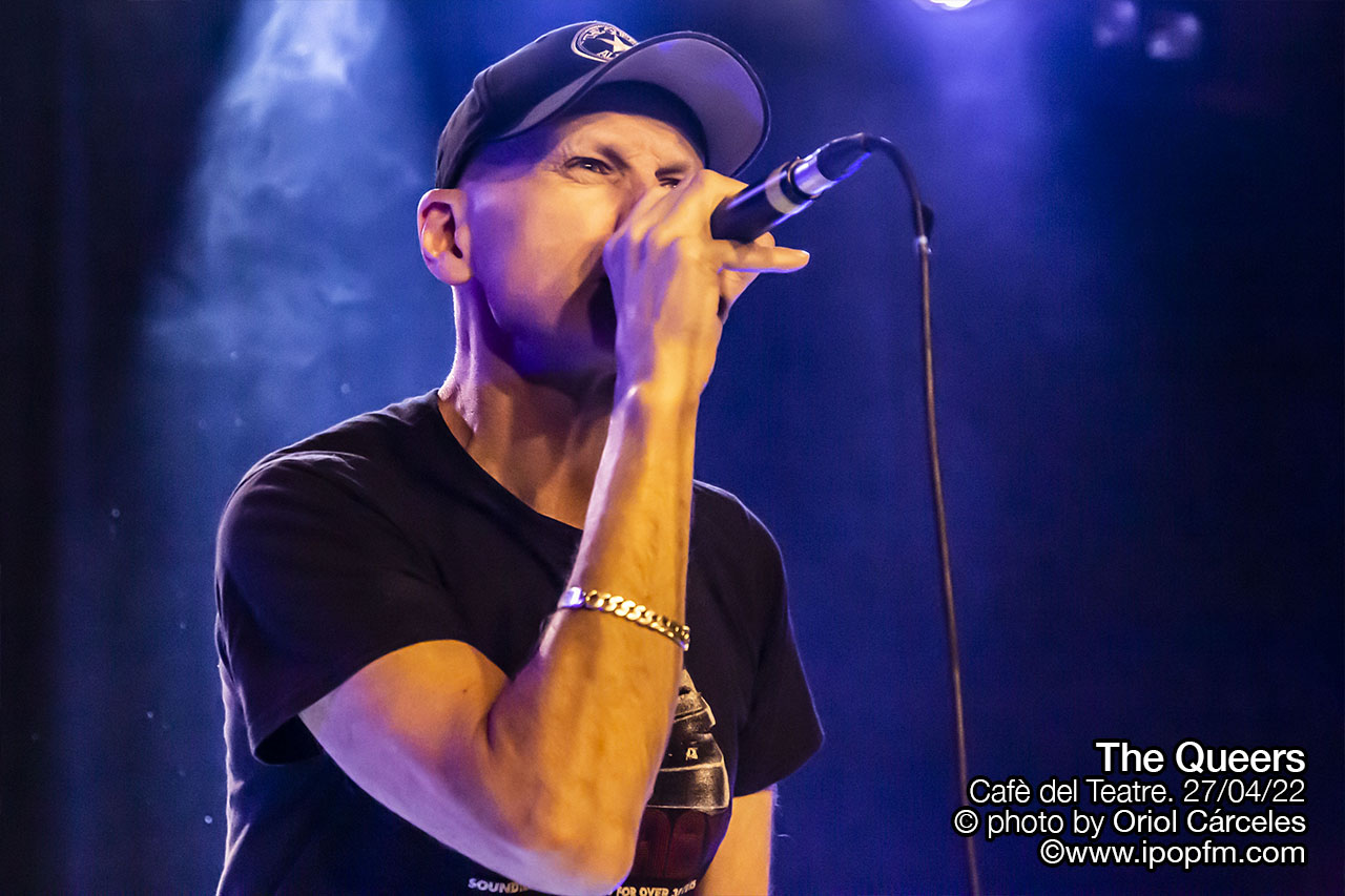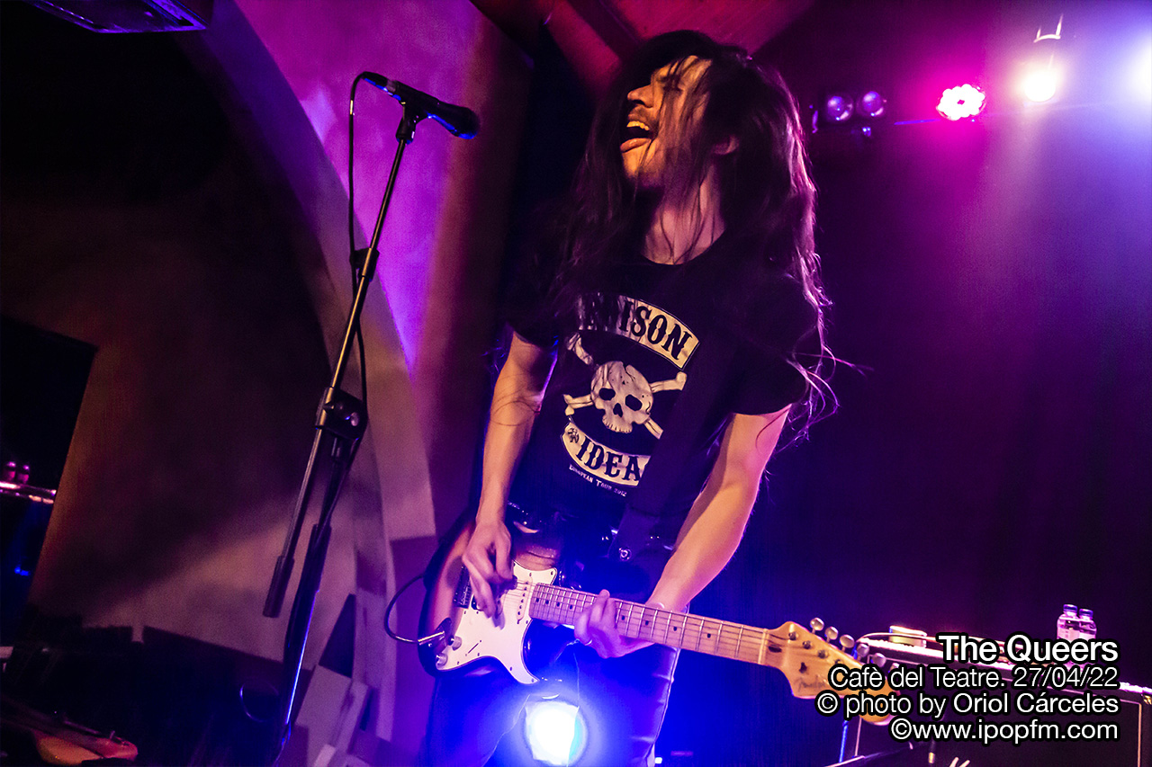Justamente el miércoles 27 de abril estos extraños, estos Queers, liderados por Joe Queer, el vocalista y único miembro original, hacían parada en el Cafè del Teatre, en Lleida, en su tour europeo, que les había llevado a cruzar el charco. Una ocasión obligatoria para todos los raros, extraños e incomprendidos de la ciudad de gozar de punkrock acelerado y fuera de tono. Empezaron los tres músicos en el escenario, rodeados de humo, interpretando la surfera Squid Omelet, en un derroche de actitud por parte de los instrumentistas.