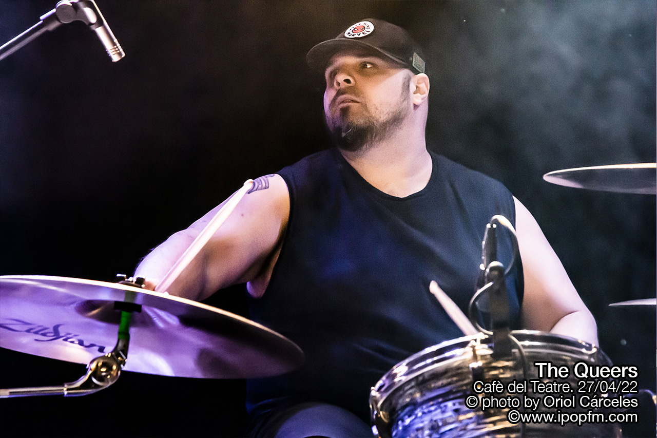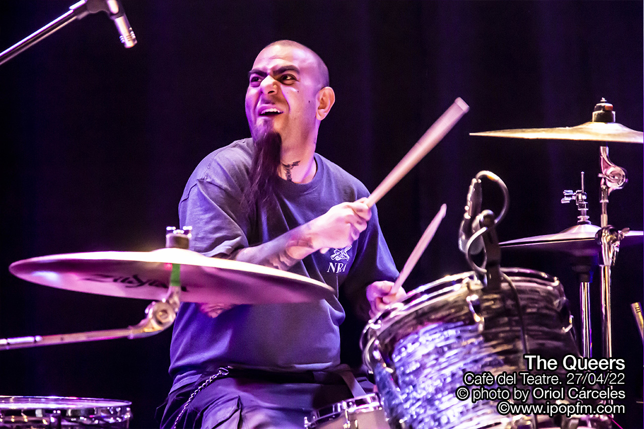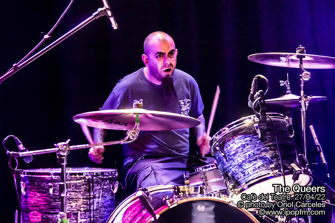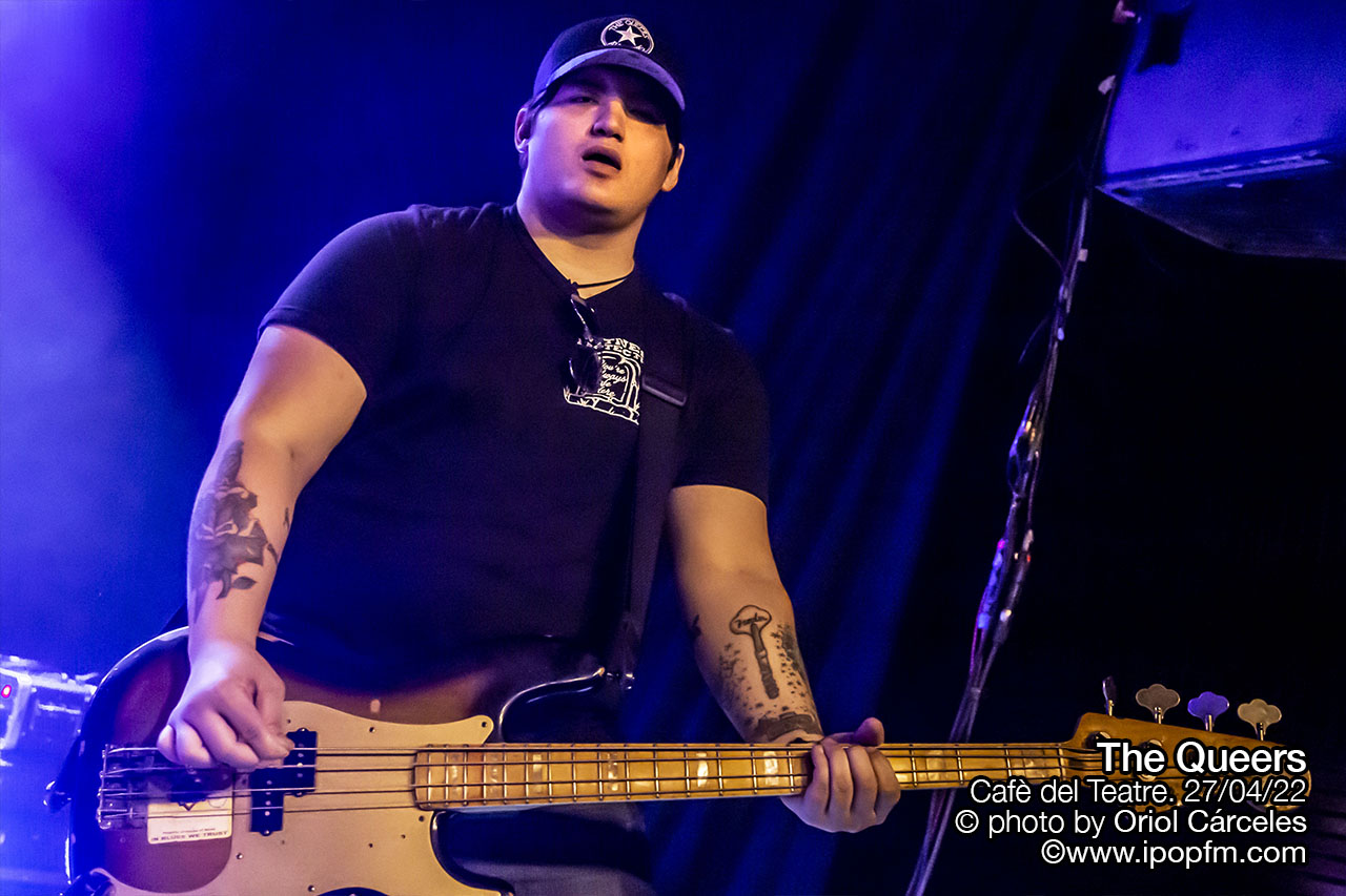 Justamente el miércoles 27 de abril estos extraños, estos Queers, liderados por Joe Queer, el vocalista y único miembro original, hacían parada en el Cafè del Teatre, en Lleida, en su tour europeo, que les había llevado a cruzar el charco. Una ocasión obligatoria para todos los raros, extraños e incomprendidos de la ciudad de gozar de punkrock acelerado y fuera de tono. Empezaron los tres músicos en el escenario, rodeados de humo, interpretando la surfera Squid Omelet, en un derroche de actitud por parte de los instrumentistas.