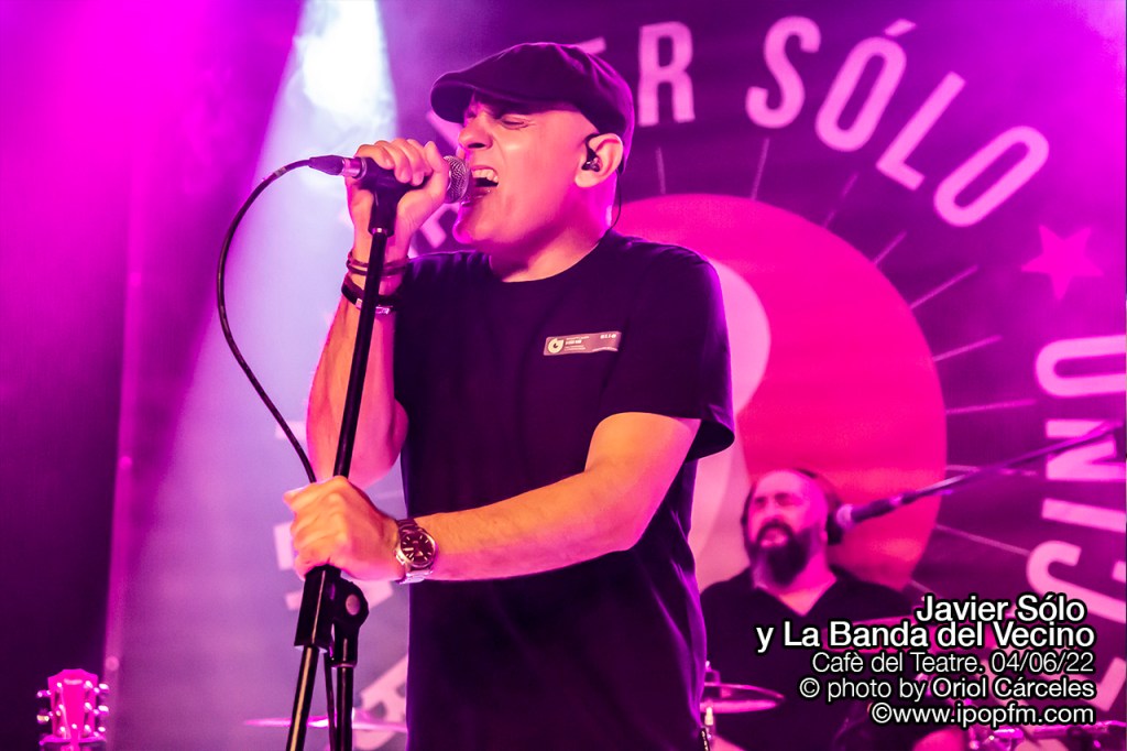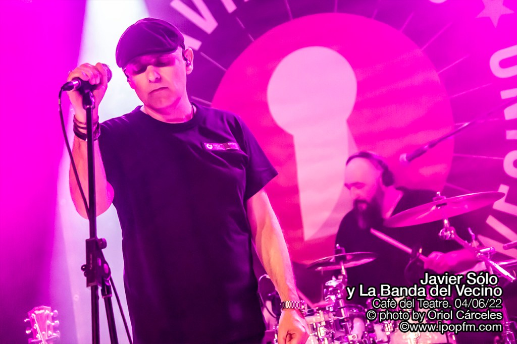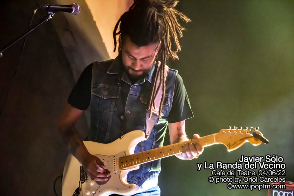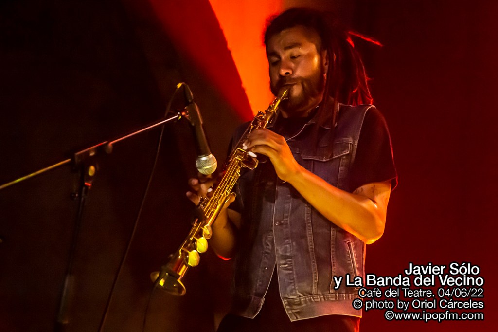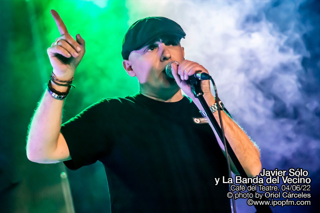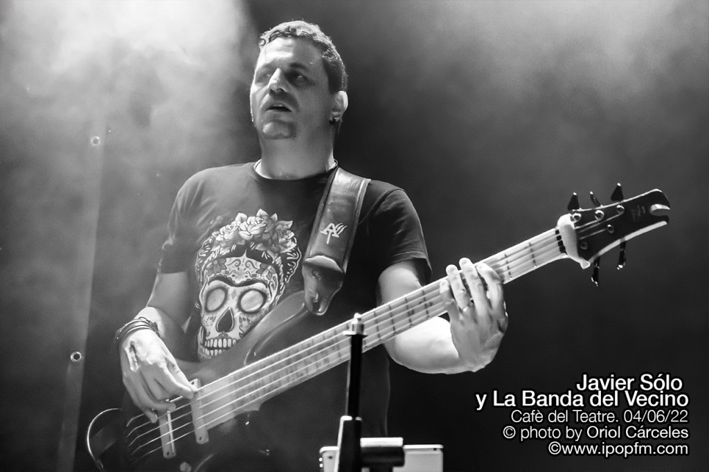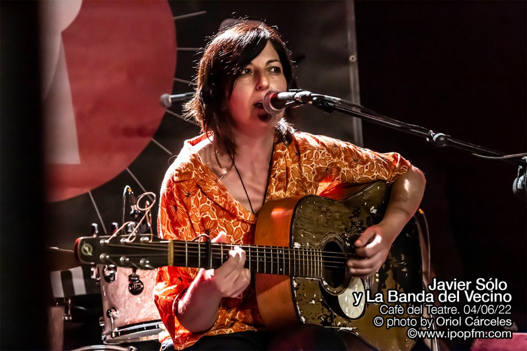 La velada del Cafè del Teatre se abrió con las delicadas melodías de la artista egarense Rosa Zea que, habiendo formado parte en su día del grupo Las Primas de Mary Jane, ahora nos presentaba sus canciones más nuevas, guiadas por un suave y cautivador color de voz. Y después del buen karma transmitido por Rosa, el sexteto de lujo denominado “La banda del vecino” empezó su concierto con “Romperlo todo” de la que Javier comenta que “está incluida en el disco “Un buzo en América”, que saldrá finalmente en septiembre de 2022.”