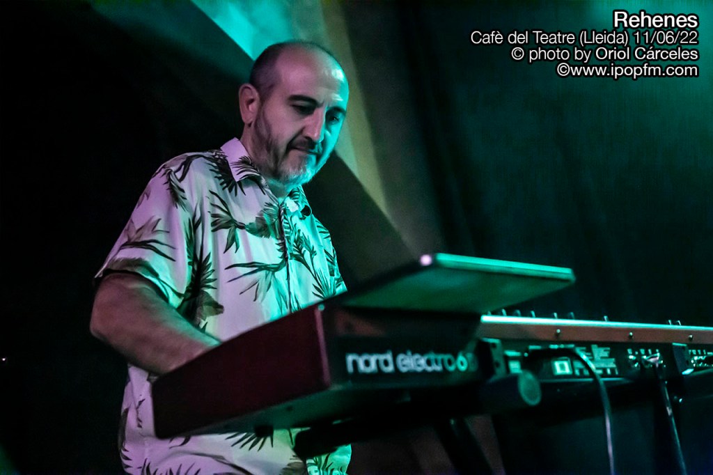 El del Cafè fue el primer concierto de Àlex Martí como batería de Rehenes. Este músico de Castellserà (Urgell) estuvo entre 1996 y 2005 en “Mil y una voces”, grupo punk con el que publicó dos CDs. Además de ejercer como profesor de música, se ha movido profesionalmente en el mundo de las orquestas de baile. Su pegada fuerte y segura combinó de maravilla con el bajo de Miquel Juárez, integrante de la banda desde sus primeros tiempos. Este rockero de pura cepa aporta al directo la parte más desatada y más salvaje, contagiando a los presentes su energía desenfrenada. En contraste, Edu Castillo es el hombre tranquilo, el melómano sensato y eficiente que, con sus intuitivos y refinados fraseos de guitarra, siempre aporta un inestimable valor añadido al sonido final. Y poca presentación necesita el reputado Xavier Monge: pianista, arreglista y docente de extensa, fértil y diversificada trayectoria. Esta destacada figura de nuestro jazz forma parte de Rehenes desde su más tierna juventud. O lo que es lo mismo, desde mucho antes de que fuera dicha destacada figura de nuestro jazz. Teniendo en cuenta lo expuesto aquí arriba, queda claro que Antonio se ha sabido rodear de grandes profesionales y de individuos con innegable pulsión creativa para construir su banda de rock’n’roll. Y, obviamente, esto se nota en directo.