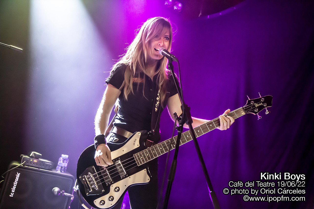 El pasado 19 de junio teníamos una interesantísima cita en el Cafè del Teatre con Kinki Boys. Aunque era domingo, y ya algo tarde –casi las diez- cuando empezó el concierto, poder ver este trío bilbaíno era una gran oportunidad. En el 2018 Marga Alday, bajista de Moonshakers y Bonzos, y Vila, batería de Los Trogloditas, concibieron este nuevo proyecto, al que se les uniría el también ex-Troglodita Tony Pik. Al año siguiente grabarían un álbum homónimo de 12 temas. A esto se le sumó un EP ese mismo año y un nuevo siete pulgadas, aparecido en 2021, con cuatro canciones, llamado Nada. Para este nuevo trabajo, cuentan con un nuevo guitarrista Mikel García Mancho, que también ha pasado por numerosas bandas, como Putoasko, Mundo Matadero, Los Vibradores y Shöck. La combinación de estos tres miembros da lugar al grupo que vimos el domingo sobre el escenario y que tanto nos gustó.