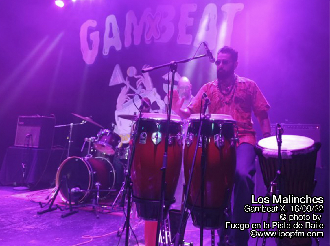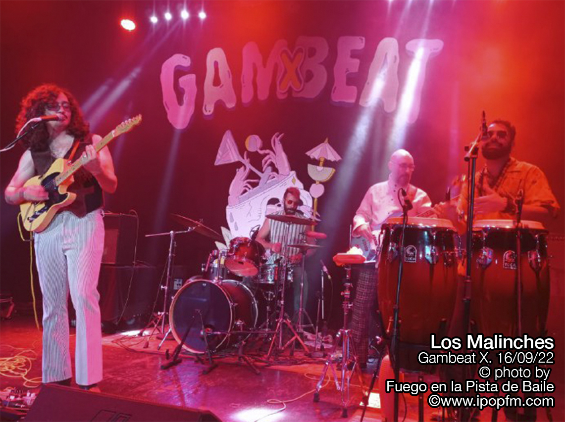 No obstante, la calidad de los grupos que tocaban hacían del evento de lo más imprescindible, ya que hubo lleno absoluto, un sold out. Los encargados de abrir la noche fueron Los Malinches, un grupo de Murcia que, como ellos mismos anunciaron al inicio del concierto, era la primera vez que tocaban en Barcelona… y qué mejor forma de hacerlo que en el Gambeat. Vagabundo fue el primer tema en sonar y desde el primer momento demostraron la enorme capacidad musical de la que están dotados y la calidad de su sonido. A la típica guitarra, bajo y batería, se sumaba un órgano farfisa y percusiones varias que daban un ritmo bailable a la psicodelia. Poco después sonaba Abrir la Mente, de su último álbum, aparecido el año pasado, Piel de Lince, que nos ha conquistado. Poco después fueron con Kama Sutra y En el Bosque, un nuevo single que han publicado este año y que forma parte de su nuevo álbum, como explicaron desde el escenario. Tras varios temas más tocaron Biónicos y Me Siento Loco, un tema más animado genial para el cierre del concierto, en el que el público ya había ido llegando y cada vez se mostraba más dispuesto a bailar, cosa que fue pasando progresivamente durante la actuación de Los Malinches. El viernes empezaba bien y con buen pie.