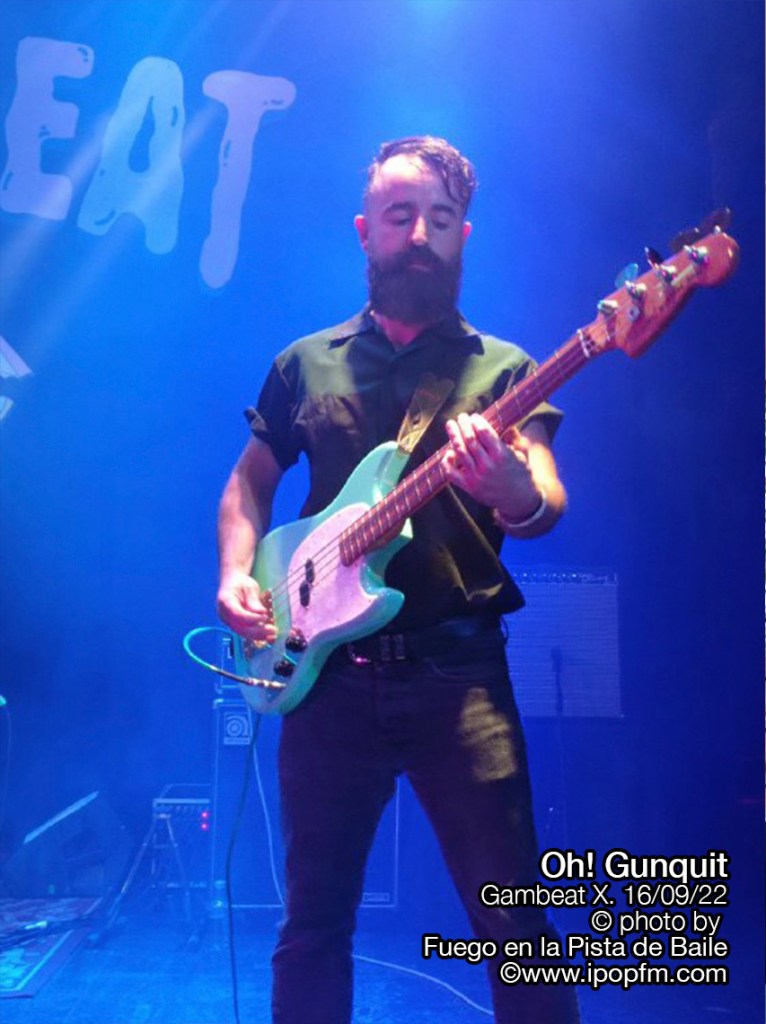 Destaca la gran energía de la cantante Tina Swasey, que lo dio todo durante la actuación, bajando del escenario desde un inicio, tocando la trompeta en algunos temas o montándose en la gamba hinchable que presidía el escenario de la sala Upload. Tras tocar unos temas más, Tina agitó un látigo e interpretaron Whiplash, tras la cual vino la alocada Dance Like Fuck. Un rato más tarde sacaron un hula hop y lo lanzaron al público, para su diversión. Pero el concierto llegaba a su fin, tras un tema instrumental y una subida de gente al escenario tocaba despedirse de estos ingleses, pero Oh! Gunquit ya habían dejado al público totalmente activado para los dos siguientes grupos que quedaban.
