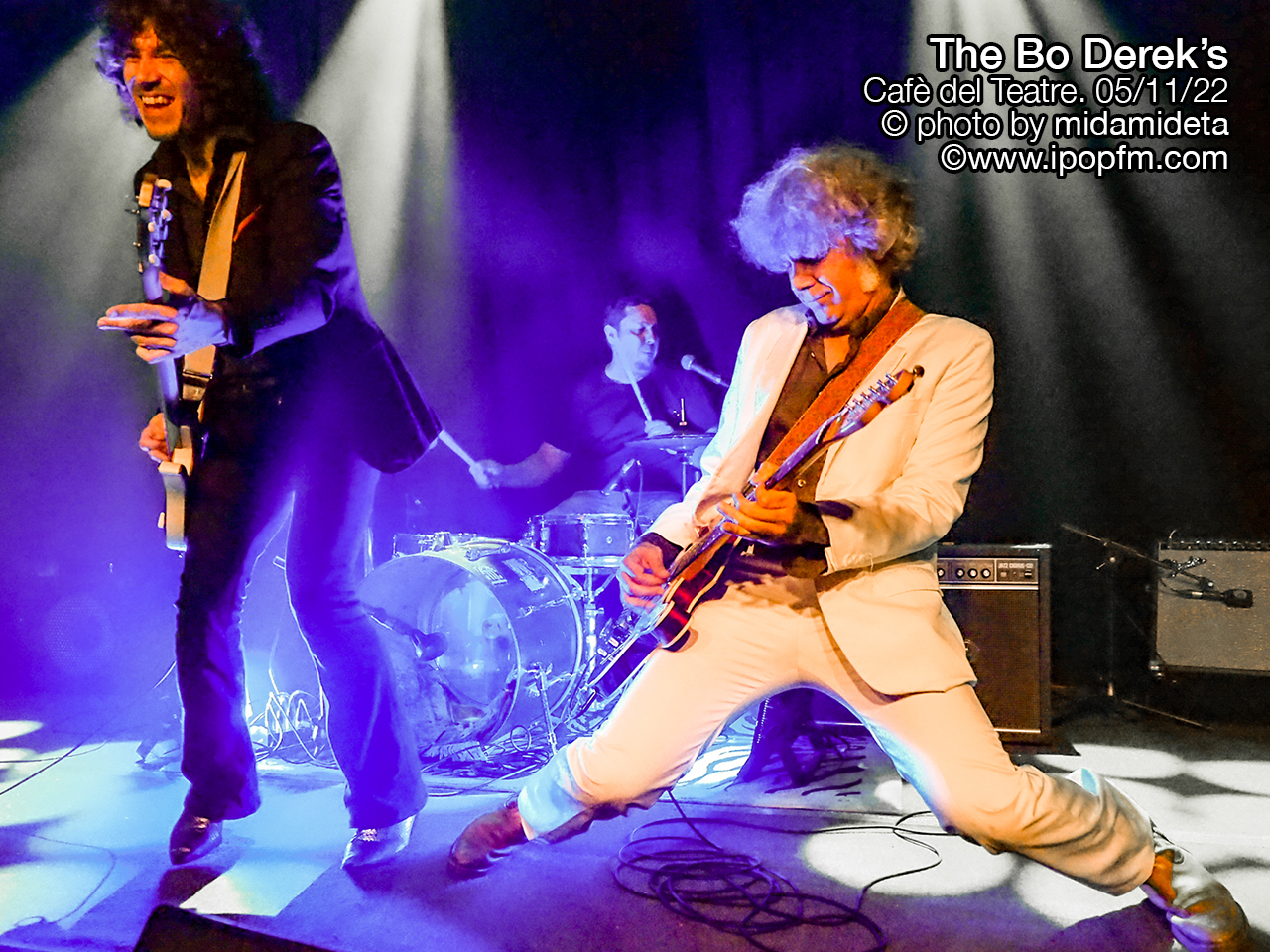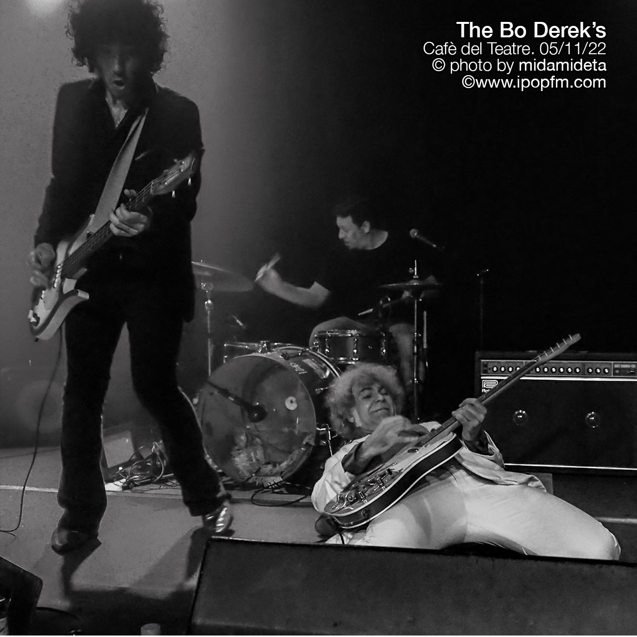 Llegó entonces el esperado turno de The Bo Derek’s. A parte de Óscar Avendaño, completan la formación los hermanos Jorge Lorre y Rufus Martín, de grupos como The Allnight Workers. Desde el primer minuto el trío gallego dio guerra y rock ´n roll, empezando con Hey Bo Derek! y Encerrados. Continuaron con Godzilla vs. Kong, más revolucionada que las anteriores. Pero no solo The Bo Derek’s son una fiesta por su acelerado ritmo, sino también por sus letras desenfadadas y su humor. Siguieron con Humo y Dulceida debe morir, un tema que pertenece a su primer álbum y que nos encanta que mantengan en su repertorio, porque es brutal. Después tocaron como un Herpes y una versión de She Does It Right de Dr. Feelgood, que hizo delicias del público, ya que es un imprescindible del rock ‘n roll. La locura fue escalando con Fireball y Más rápido que tú.