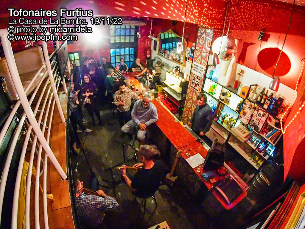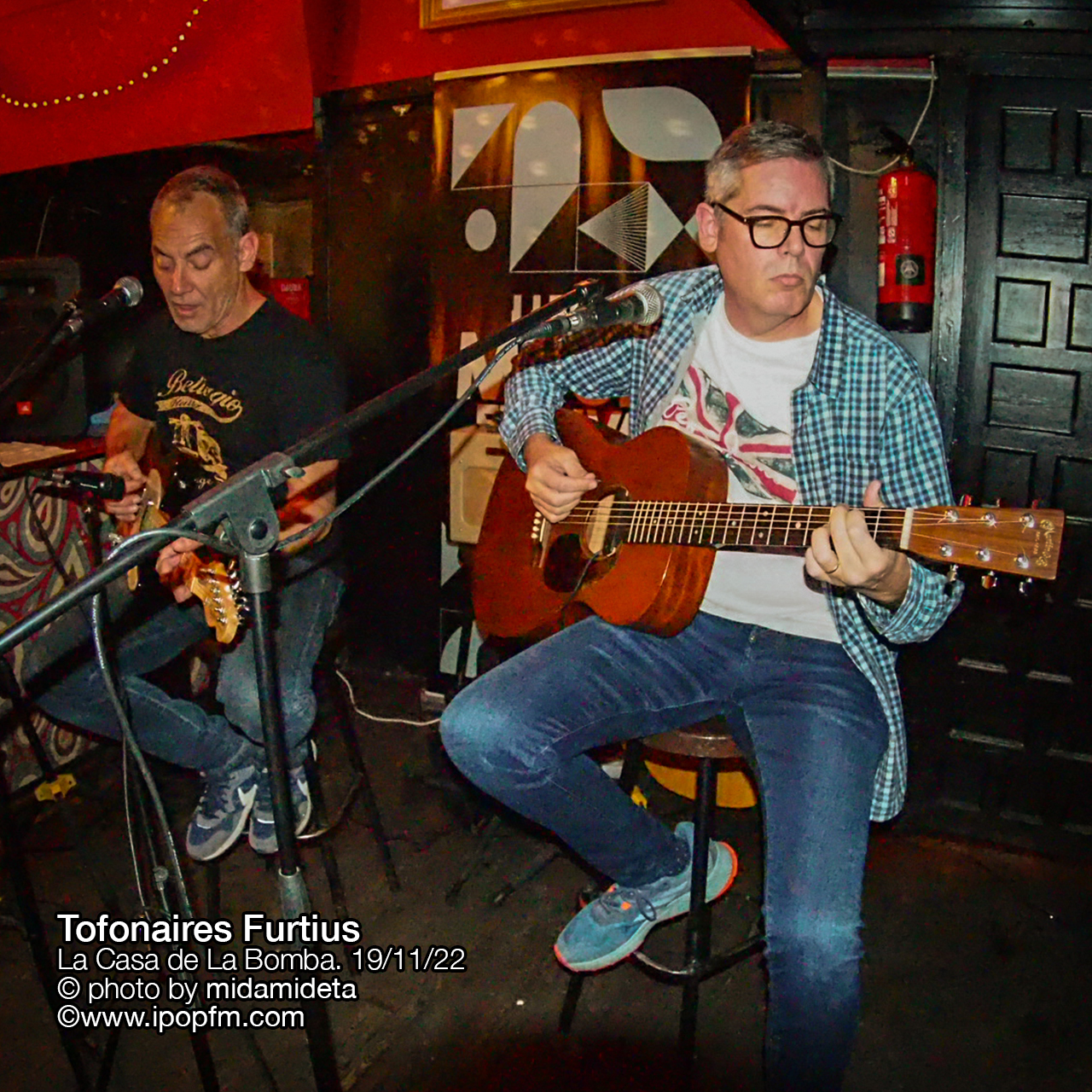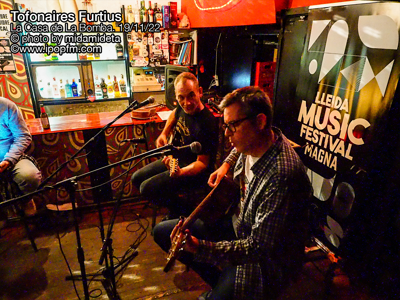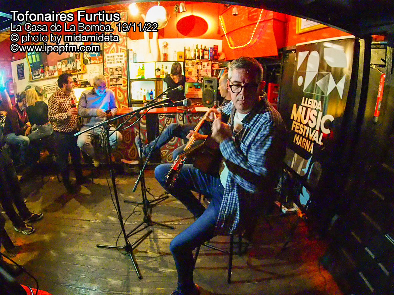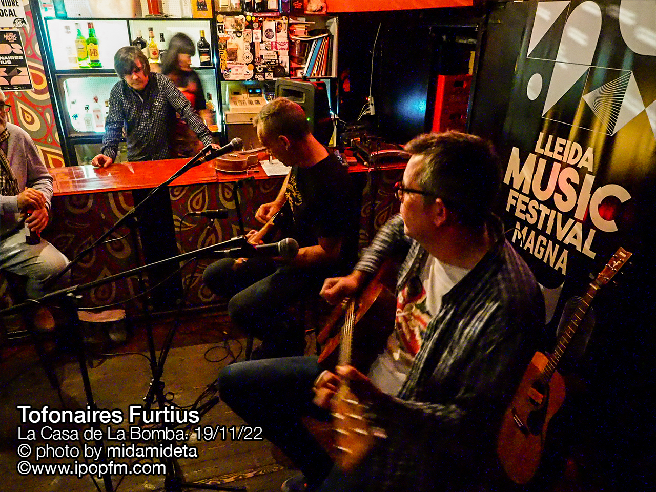 Y después de la más desmarchada de las ocho canciones, que era precisamente Tofonaires Furtius, continuaron con las versiones que tenían previstas: Radiohead y su sofisma destinado a perpetuar una ideología política que es dos más dos son cinco, pasada por el filtro del tropicalismo y cantada en portugués, que se entrelazó con una revisión onírica de Thriller y la perversión más bedroom pop del Down to the Waterline de los Dire Straits. Obivamente el universo sonoro de los cazadores de hongos están los Beatles y más concretamente el Back To The USSR que dio paso a un Dona Astuta, o Foxy Lady de Hendrix. Y para sorpresa del respetable presente en la sala, los Kraftwerk no se escaparon de la termomix y Radioactivitat (Radioactivity) quedó versionada de forma excelente. Finalizaron con un tema en inglés para dejar claro que en la fértil escena ilerdense tiene a los Tofonaires Furtius como representantes del pop más íntimo, el pop de sotobosque que esconde pequeñas joyas, las trufas.