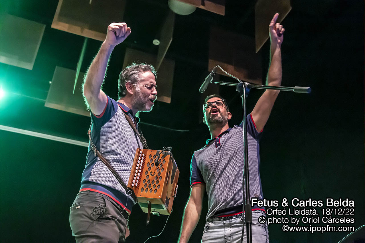 Al fondo de la sala, fuera de la zona de mesas, el ambiente era animado, con saltos y coreos, lo normal en un concierto de Fetus. Siguieron con Lo Comte Arnau de su anterior álbum, para volver a La Serra dels Perduts con la animada Isabel Cinc Hores y después retrocedes hasta Terra Cuita para rescatar Senyora Trencadissa. Con les Rondes del Vi hicieron un amago de acabar, pero aún quedaban los bises, que hicieron que un grupillo se concentrase enfrente del escenario. Romanço d’en Quico Sabaté es uno de esos emotivos temas en los que merece la pena levantar el puño cerrado. Goigs de Sant Martí es una provocativa canción contra el Estado español y su monarquía y parece que a partir de ahora será imprescindible en sus conciertos. El último tema fue Estel Roig, más lento y genial como despedida de un magnífico fin de semana. ¡Hasta la siguiente, Fetus!