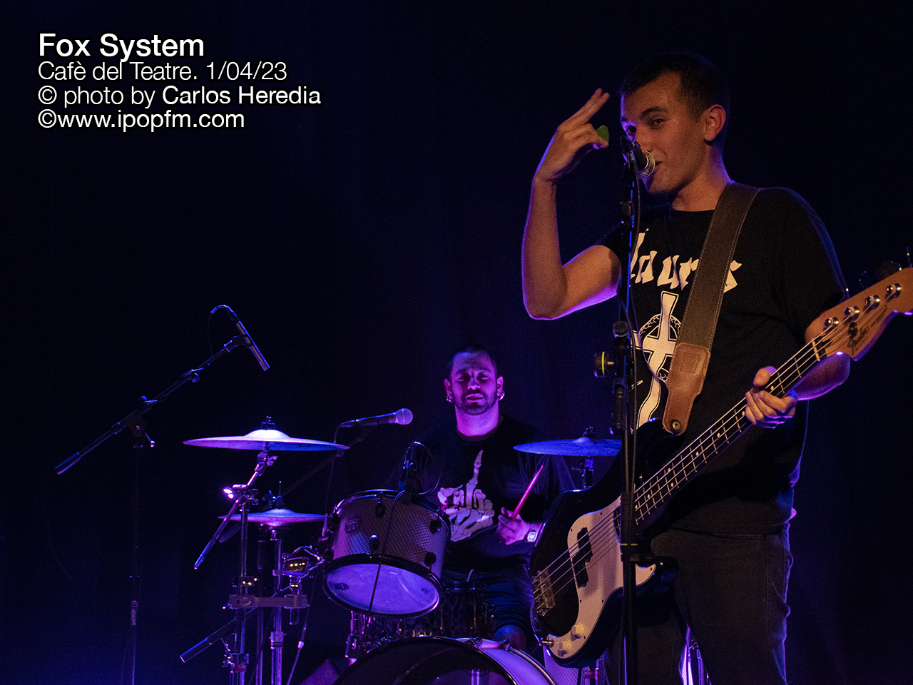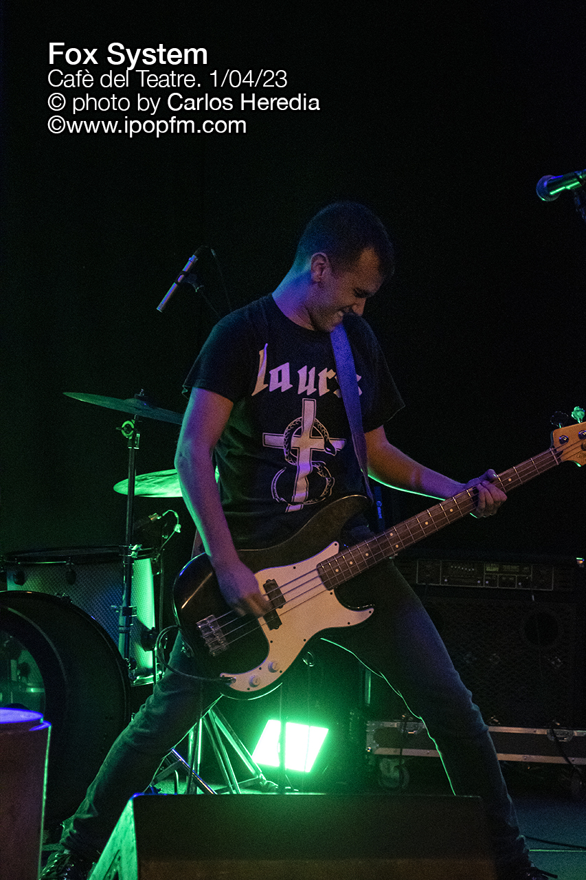 Fox System abrió la noche con varios temas de Dualitat, aparecido hará dos años: Fulls en blanc, Detonador y Vidres a la sang fueron algunas de las canciones que escuchamos al principio. Teníamos ganas de volver a ver en directo a Fox System, ya que la última vez que tocaron en diciembre, en el esperado regreso de The Antipatiks no pudimos estar, así que fue de gran alegría oír de nuevo temas como Vacances a la presó y Doctor Torment, de su primer EP. Siguieron, para delicia de los puristas presentes, con una versión de Transmission de Joy Division, tras el cual fueron con dos nuevos temas. A todo ello hay que sumar la capacidad que tiene Genís Casanovas, bajista y cantante, de entretener al público entre tema y tema. El meu panís es una reivindicación de la pagesia. No obstante, el grupo no se olvidó tampoco de los temporeros y del mensaje antirracista. Se ha de destacar también el papel de Ricard Zapater a la guitarra y Albert Casanovas al bajo.