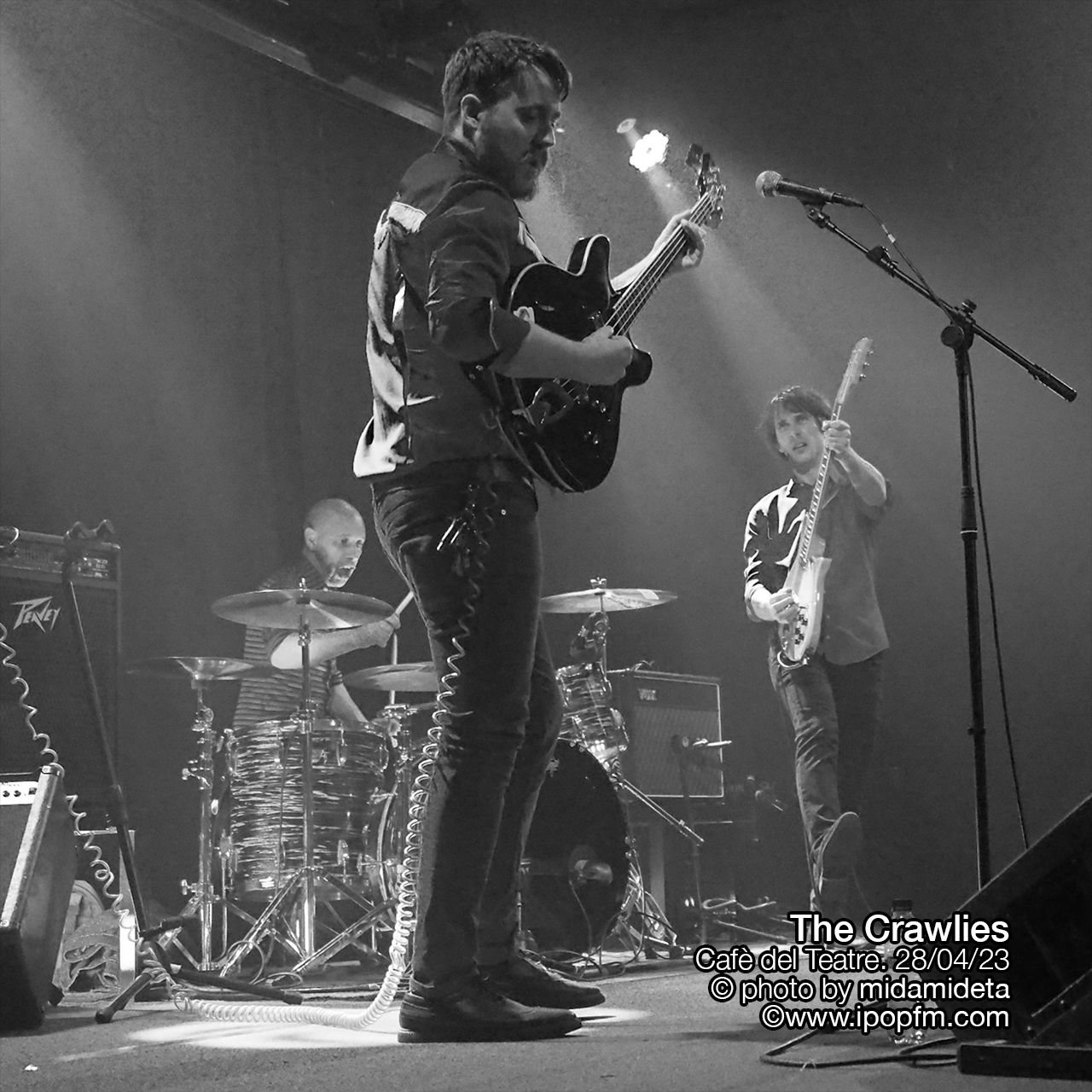 Los zaragozanos fueron los encargados de abrir la noche. El trío desplegó desde el primer momento su enérgico sonido de garaje, con elementos de power pop y punk. Empezaron con un instrumental y poco después sonó Last Tears, de su último EP publicado hasta la fecha, Crawling Back To You, para seguir con Old Letters, uno de los temas que The Crawlies han aportado al recopilatorio Vinieron Dentro de…, que recoge material de otras tres bandas de la escena aragonesa como Los Turbios, que también han pasado por el escenario del Cafè del Teatre, Los Balarrasas y Psychophónicos.