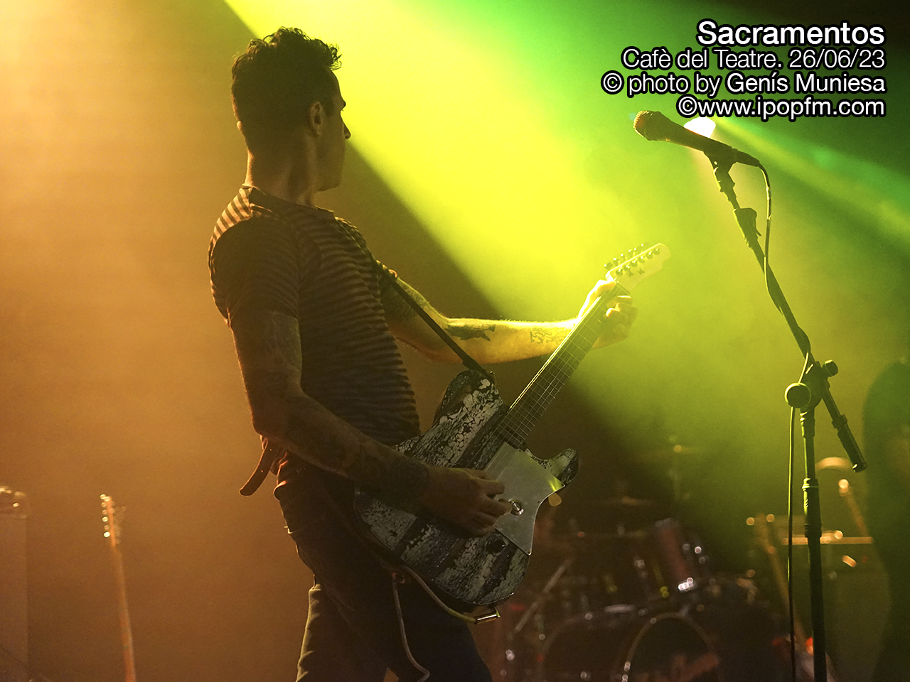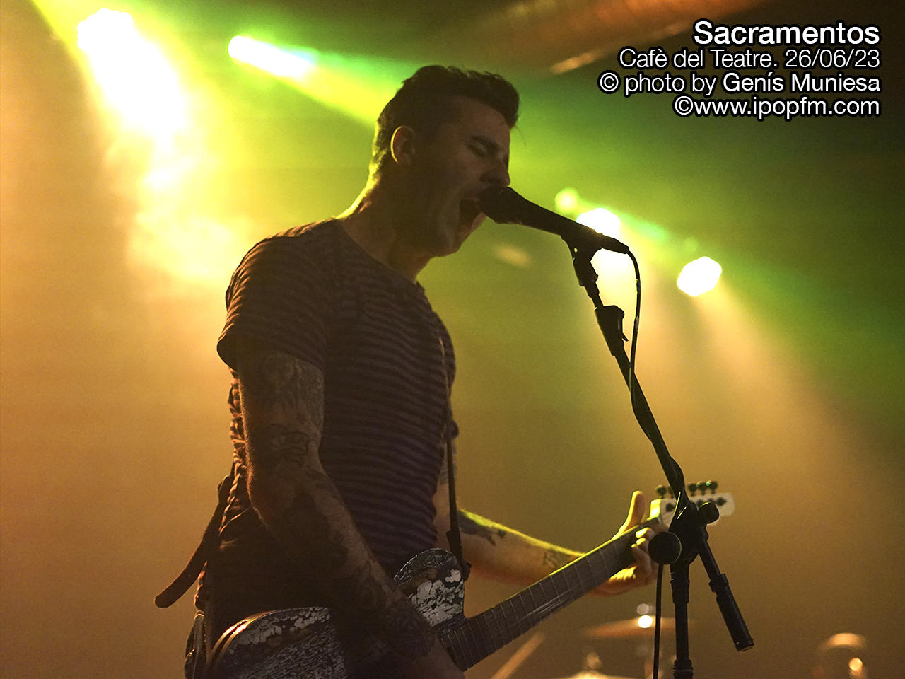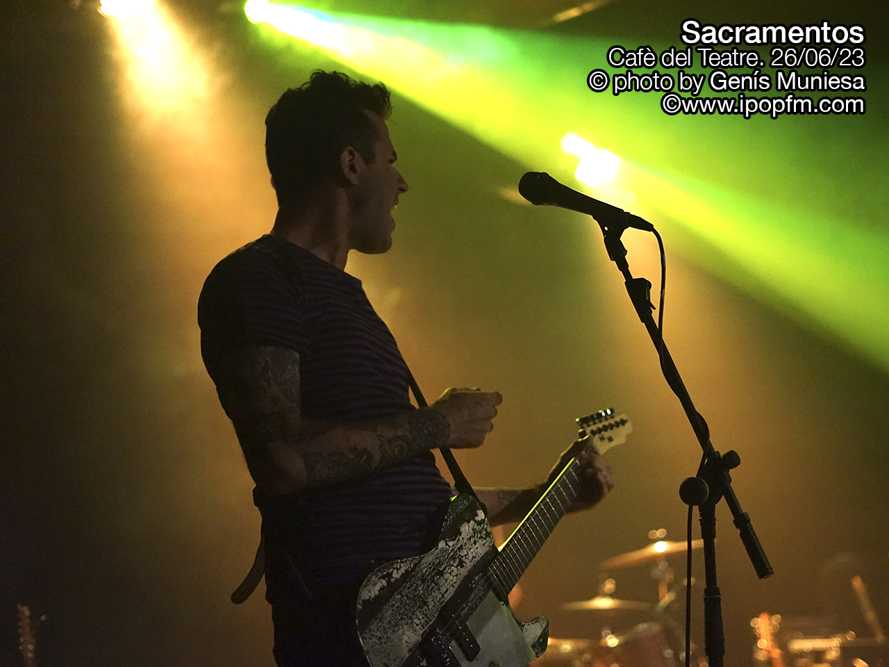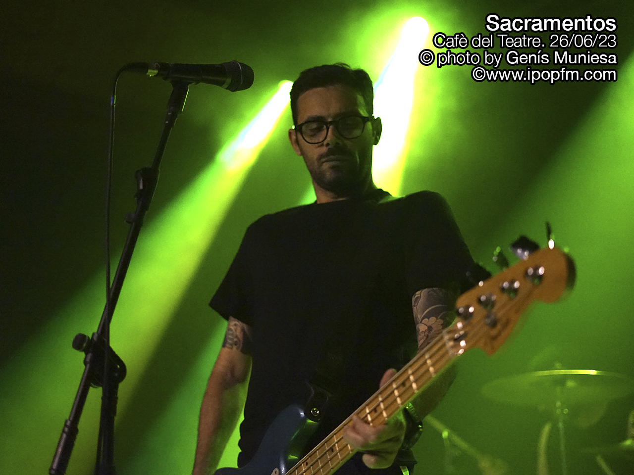 Este trío fue el encargado de abrir la velada, cerca ya de las diez de la noche, con Gramo de tensión, seguido de Bolsa de Humo, ambos pertenecientes a su último EP, Bolsa de Humo, aparecido hará dos años. Poco después sonaba El Tiempo es Oro, que pertenece a ese mismo trabajo. Tampoco se olvidaron de repasar su único LP hasta la fecha, con Baladas Criminales y Ecos Atemporales, tema que da nombre al álbum. Ruby, la siguiente canción en sonar, pertenece a su primer EP, del año 2018. Los Jueves Te Espero, en cambio, se encarga de abrir Ecos Atemporales. Con Bares de Moda se fueron acercando al final del concierto, que acabó definitivamente con Razones, de su primera maqueta. Si buscáis a un grupo de rocknroll con claras influencias ramonianas, Sacramentos satisfará las ganas de ruido, con temas rápidos, pero a la vez melódicos.