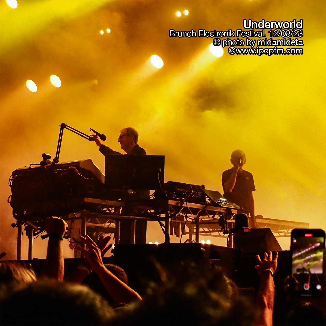 Y claro después del Rey, ya solo pueden jugar los dioses, los creadores del universo y un sinfín de nombres rimbombantes, con los que seguir engrosando estas líneas. Y es que parafraseando a ya nuestro excapitán Gerard Piqué, hay muy pocas bandas (tres quizás) a las que se les pueda aplicar la maravillosa frase de ¡CONTIGO EMPEZO TODO! y por suerte teníamos a una de esas tres para cerrar de la forma más monumental posible esta primera edición de BRUNCH ELECTRONIK FESTIVAL: Nada más y nada menos que Underworld.