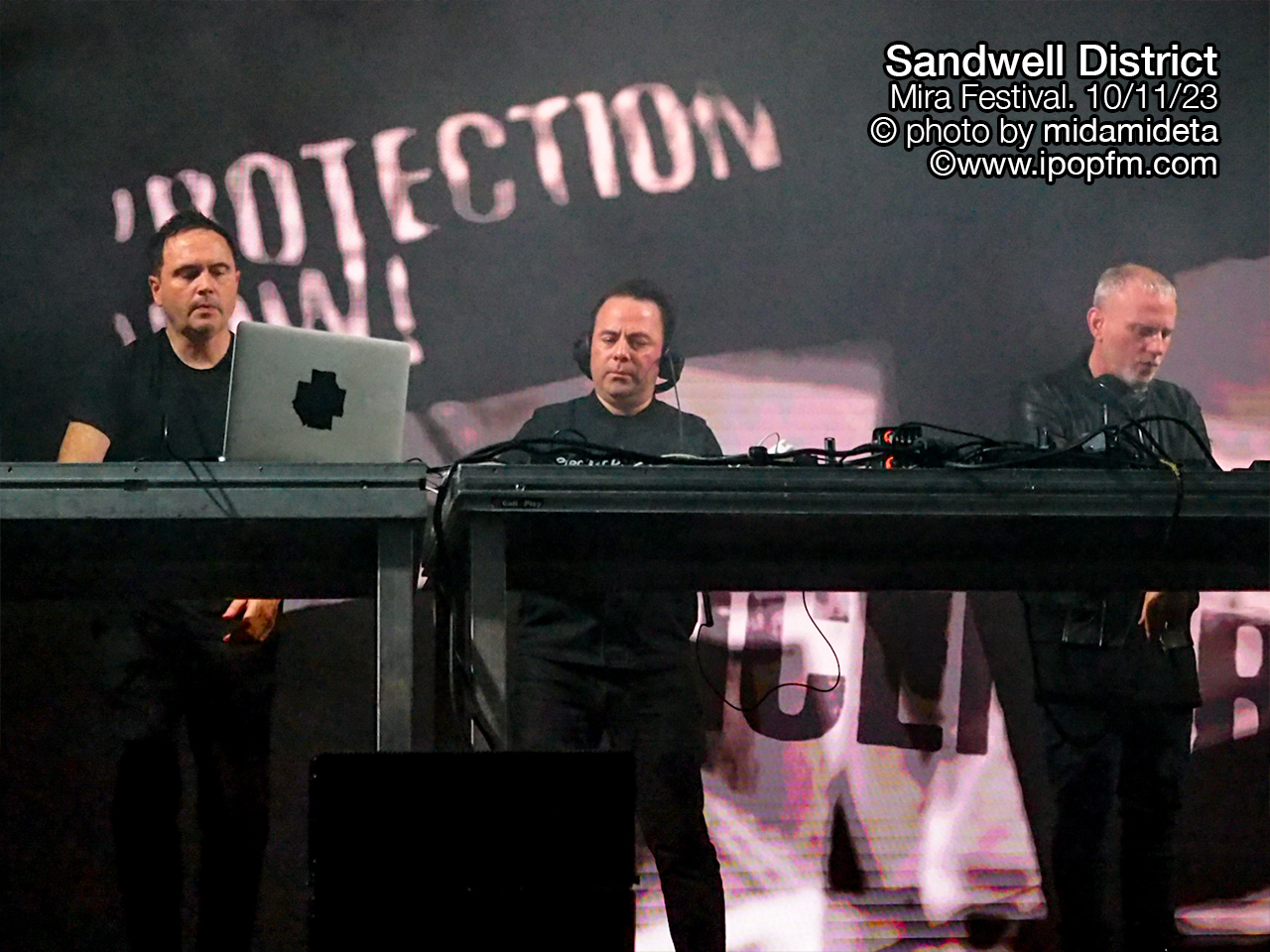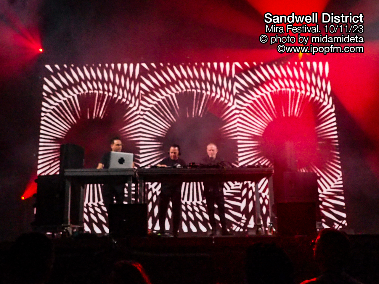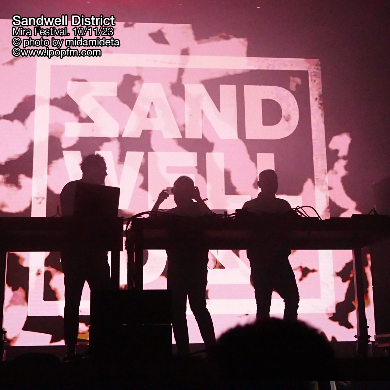 Sandwell District no defraudaron lo mas mínimo y es que el colectivo germano ofreció exactamente lo que se esperaba de ellos, desde la indumentaria de sus tres miembros de negro integral, hasta el show audivisual minimalista y sobretodo el sonido 100×100 techno sin acelerar los bpm’s pero inflamandolo con grooves potentísimos.
