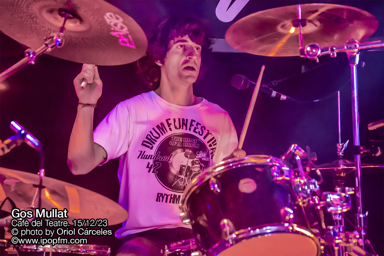 Gos Mullat abrieron la velada. Se trata de una nueva banda de Alcarràs –aunque con músicos que han pasado por otros grupos musicales, como Memento Mori- que ya cuenta con un nutrido contingente de seguidores, sobre todo entre gente del mismo pueblo, que colmaron las primeras filas del concierto. Con un EP autoeditado «L’AntiMúsica» (2023), hace escasos días Gos Mullat ganó el concurso Bandes Emergents de la Casa Música de Lleida. Por todo ello, podemos decir que la cuota ponentina estaba muy bien representada y en buenas manos.