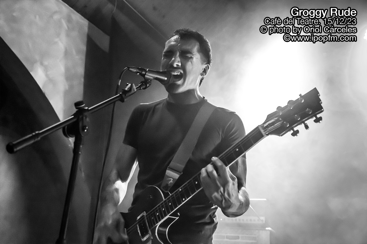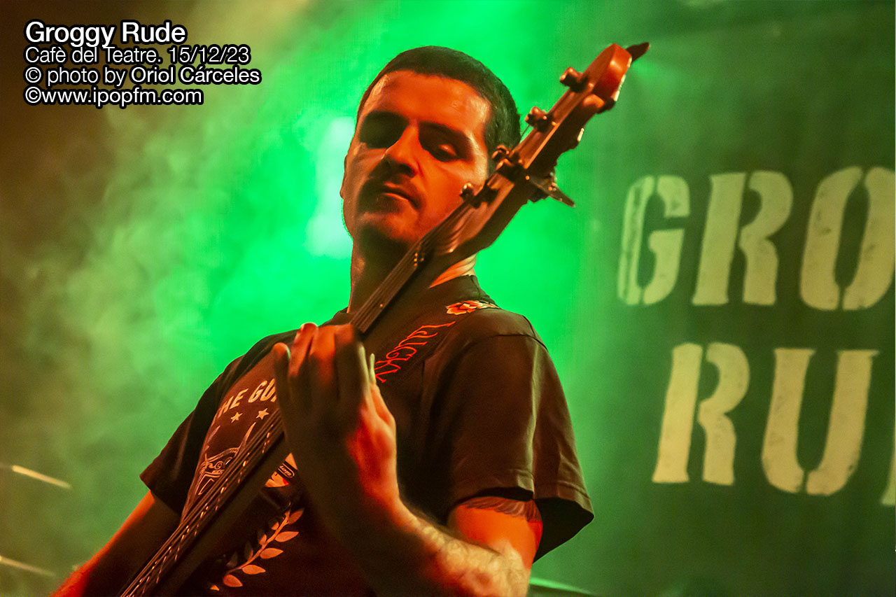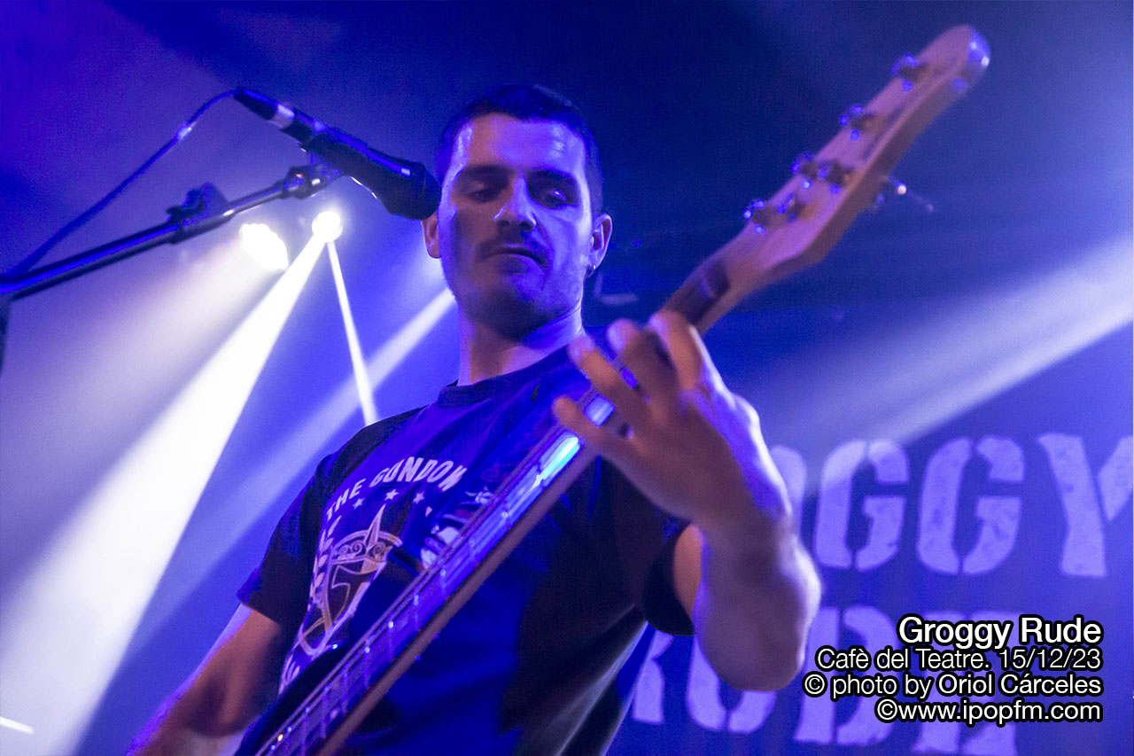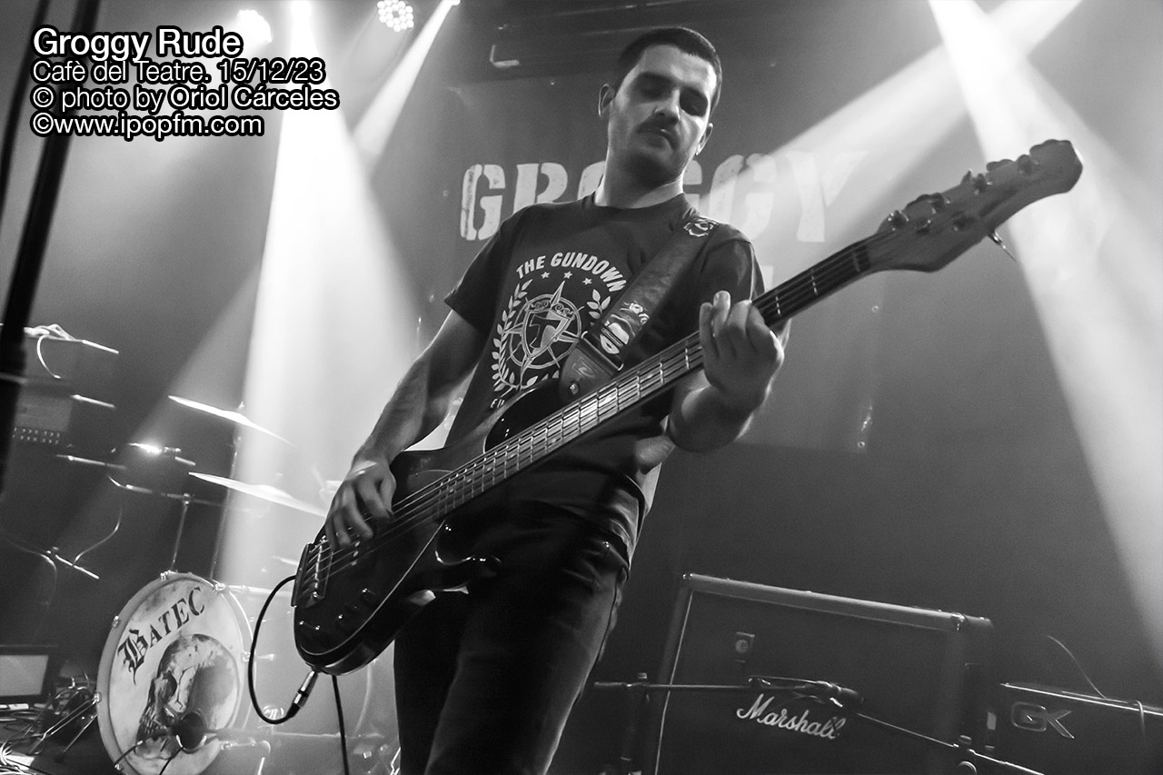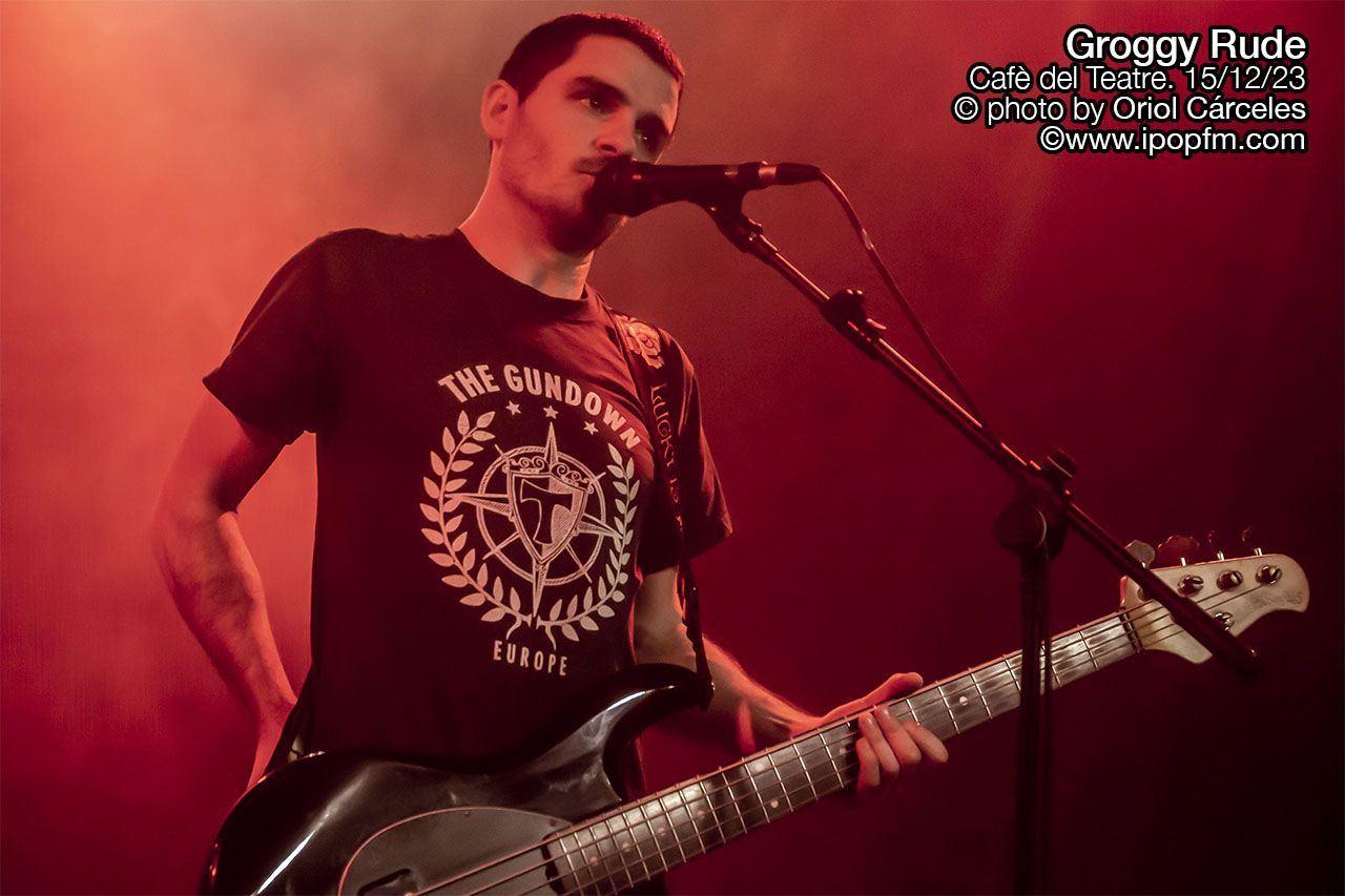 A continuación, le tocaba el turno a Groggy Rude, que, aunque los tarraconenses ya habían tocado en Lleida en más de una ocasión, era su primera vez en el Cafè del Teatre, al igual que Gos Mullat. En esta ocasión venían a presentar su Split con Batec, Riure o Plorar, tema con el que abrieron el concierto, seguida de otras canciones de su nuevo trabajo: Nit i Dia. Para entonces la sala ya estaba llenísima. Muralles, de su anterior álbum, Temps Morts, hacen referencia a las famosas murallas de su ciudad. Tras hablar de su nuevo álbum, se lanzaron a tocar un tema de éste: Crits. No obstante, no renuncian a canciones anteriores, como La Plana, de su primer álbum, Tarraco Punkrockers, de 2017, del cual también tocaron Estem tornant, versión del We’re Coming Back de Cock Sparrer.