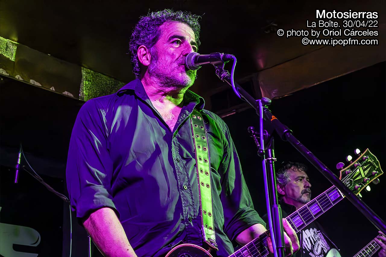 ¿A quién no le gustan los Ramones? Grupo icónico, marcado por un sonido 100% punk y rocknrollero, letras guasonas y directo contundente. No es de extrañar, pues, que aún haya grupos que sigan su escuela. Eso no significa quedar reducido a una burda copia, sino dotarse de sólidos cimientos sobre los que asentar el grupo. Las dos bandas que pudimos ver en la Boite el martes 30 de abril lo demuestran. Se trata de dos veteranas agrupaciones de Santa Coloma de Gramenet: Motosierras y F.A.N.T.A., que venían a prender fuego a la noche.