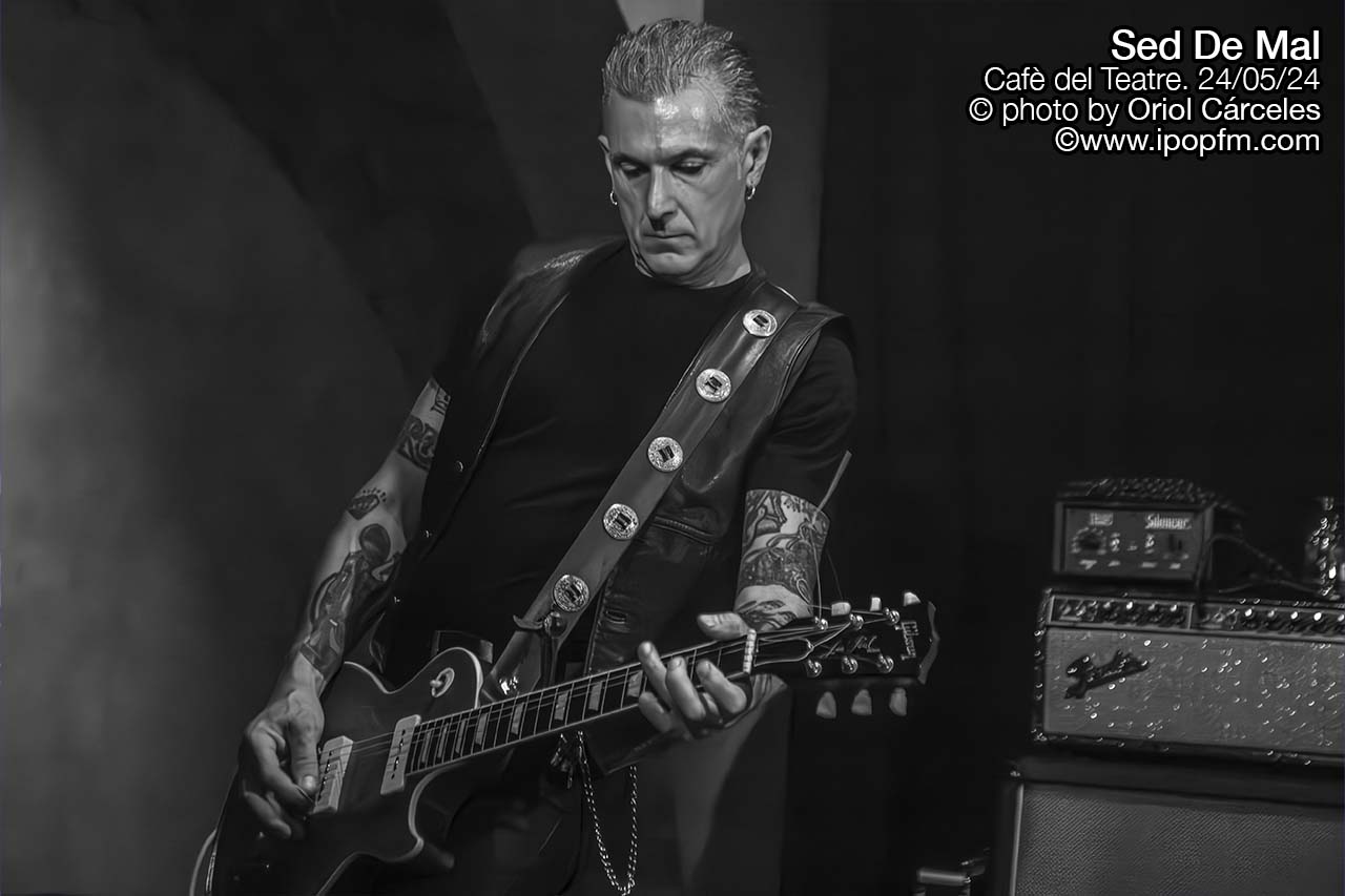 No podíamos despedir el mes de mayo sin un buen concierto de rocknroll. El viernes día 24 los barceloneses Sed de Mal pasaban por el Cafè del Teatre para presentar su nuevo EP, La Belleza y la Catástrofe. El grupo inició su andadura en otoño de 2020, aún no hace cuatro años, pero sus miembros no son en absoluto desconocidos en la escena musical: se trata de una nueva aventura de Xavi Vendrell, vocalista, y Feliu Pla, batería, miembros de los míticos BB Sin Sed. A ellos se les unió Miguel Figuerola de Flores del Mal a la guitarra y Albert Mas de Midnight Special al bajo. Un año después, se incorporaba Javi Rodríguez de Gloria o Muerte para completar la formación. A parte de numerosos singles, en 2021 publicaron un LP homónimo y en esta ocasión venían con su nuevo EP, además de numerosas canciones no grabadas aún.