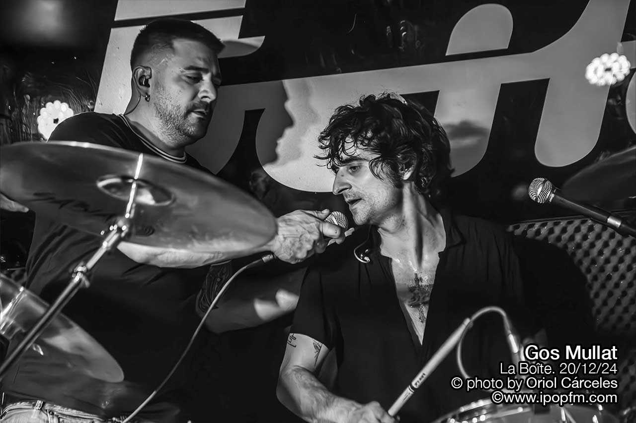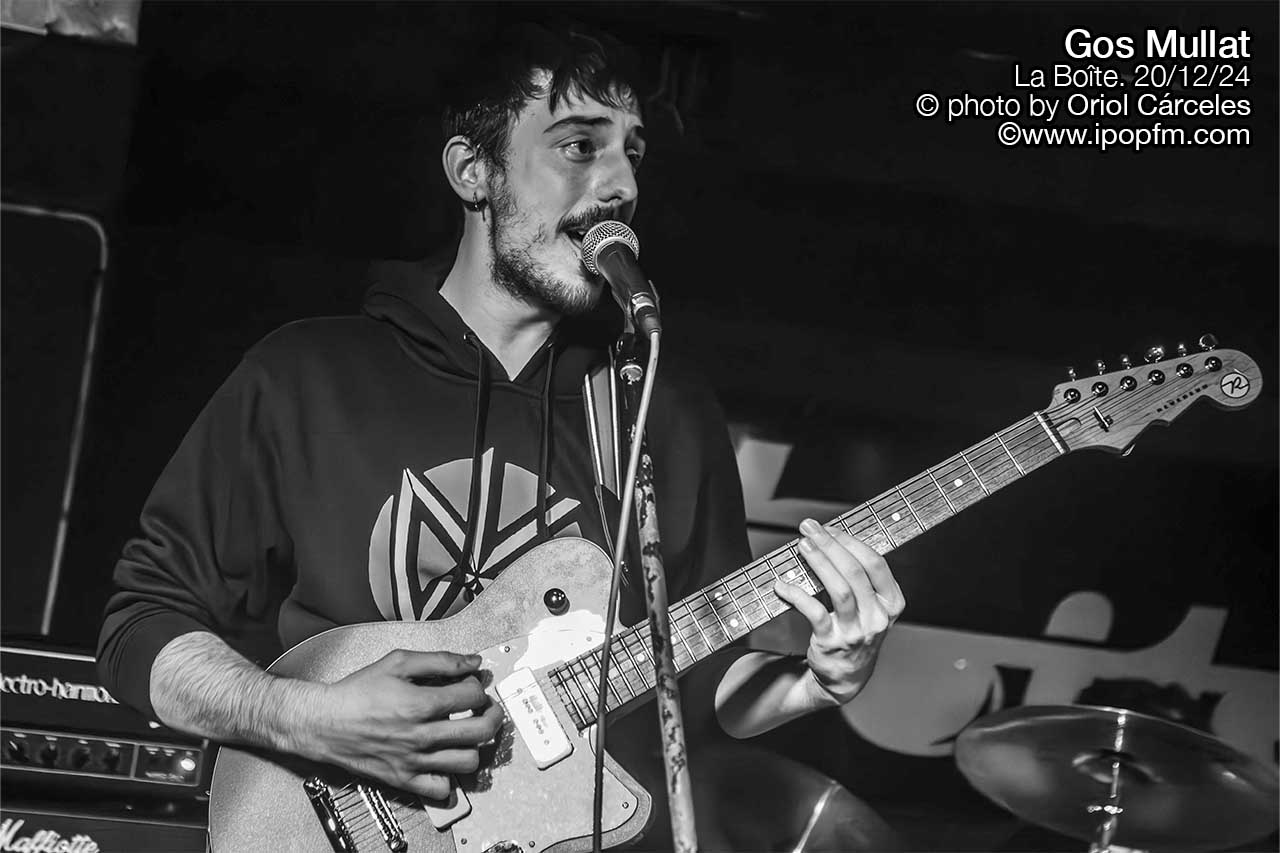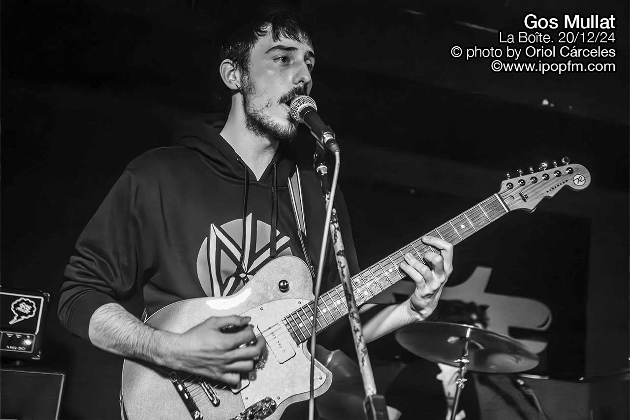Poco después de que dieran las diez Gos Mullat iniciaron la velada con Perquè Volem, un tema de su primer larga duración, Cumulonimbus, aparecido este año. Al principio había poca gente en la sala, pero a los pocos temas el público había crecido significativamente. Los de Alcarràs se han ganado un buen grupo de seguidores en su corta trayectoria como banda (pero no como músicos, ya que han tocado en otras formaciones anteriormente), no en vano el año pasado obtuvieron el año pasado en el concurso de bandas emergentes de la Casa de la Música. Pere, el vocalista, empezó el concierto exclusivamente como frontman, sin guitarra, pero al cabo de pocas canciones ya tocaba las seis cuerdas. Artur Canadell es el encargado de la guitarra solista y completan la formación una sólida sección rítmica con Arnau Siscart al bajo y Joel Eres a la batería.