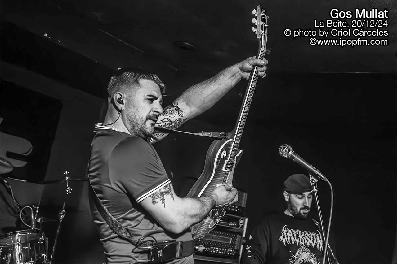 El cuarteto continuó tocando temas de su último trabajo, Cumulonimbus, como Bucle infinit, Jou o L’Abisme espera. Las primeras filas estaban muy animadas, mientras seguían repasando temas de su nuevo material como Brindem o Préssics i Tosinos. No obstante, no se olvidaron de su primer EP, L’Antimúsica, bautizado así porque un vecino del pueblo les recriminaba que su sonido era ruido. De este primer material tocaron Camí de Reguers y, tras tocas una versión de NOFX, se lanzaron con dos de las canciones más populares del grupo: Alcarràs, un grito agónico y a la vez de reivindicación de una pagesia que desaparece engullida por un capitalismo voraz y depredador, y Rei de l’Asfalt. Finalmente, cerraron su actuación con El meu avi, una versión que han publicado hace poco del clásico habanero Josep Lluís Ortega Monasterio. Como último apunte a destacar de los tres cuartos de hora que tocaron Gos Mullat, queremos señalar con optimismo la presencia de gente muy joven en las primeras filas. Parece que el punk tiene relevo y más años de vida.