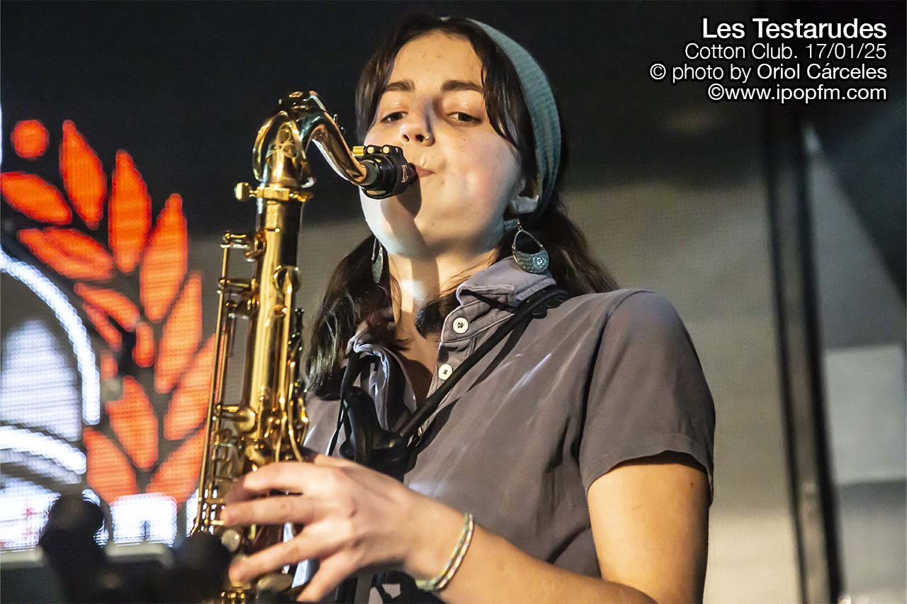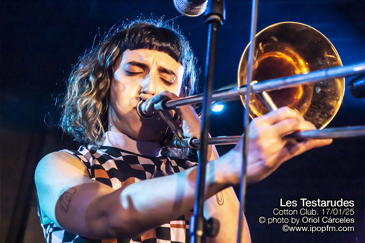 A continuación, le tocó el turno a las cabezas de cartel, las Testarudes, un gran grupo, con sección de vientos y todo, enteramente femenino, que llevan unos dos años en activo y consiguen ya arrastrar a sus muchos devotos allá adónde van. Comenzaron con un animadísimo Wings of Dove de Prince Buster, para gastar zapatilla desde el minuto uno, seguida de Donna de los Blues Busters, uno de nuestros conjuntos musicales de referencia en lo que a sonidos jamaicanos se refiere. Tras ello, Núria Pino, la cantante, anunció que tenían por primera vez copias de su primer LP, por lo que tocaron una canción de éste, aparecido como single hace poco, Vull uns mocasins.