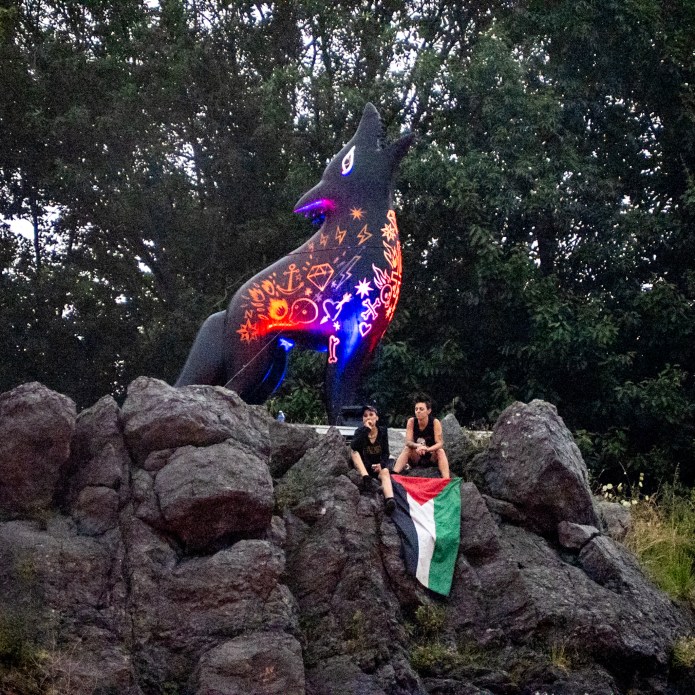 Y es que como se suele decir después de la tormenta viene la calma, pues aquí fue al revés, después de la calma llego la tormenta y es que los siguientes en salir al escenario fueron los irlandeses kneecap, con su rap combativo, acompañado de unas bases bastante Hard Techno old School, que convirtieron el escenario San Miguel en un inmenso Circle Pit, flanqueado por una marea de banderas palestinas y acompañado por un clamor popular ¡¡Free Palestine!!.