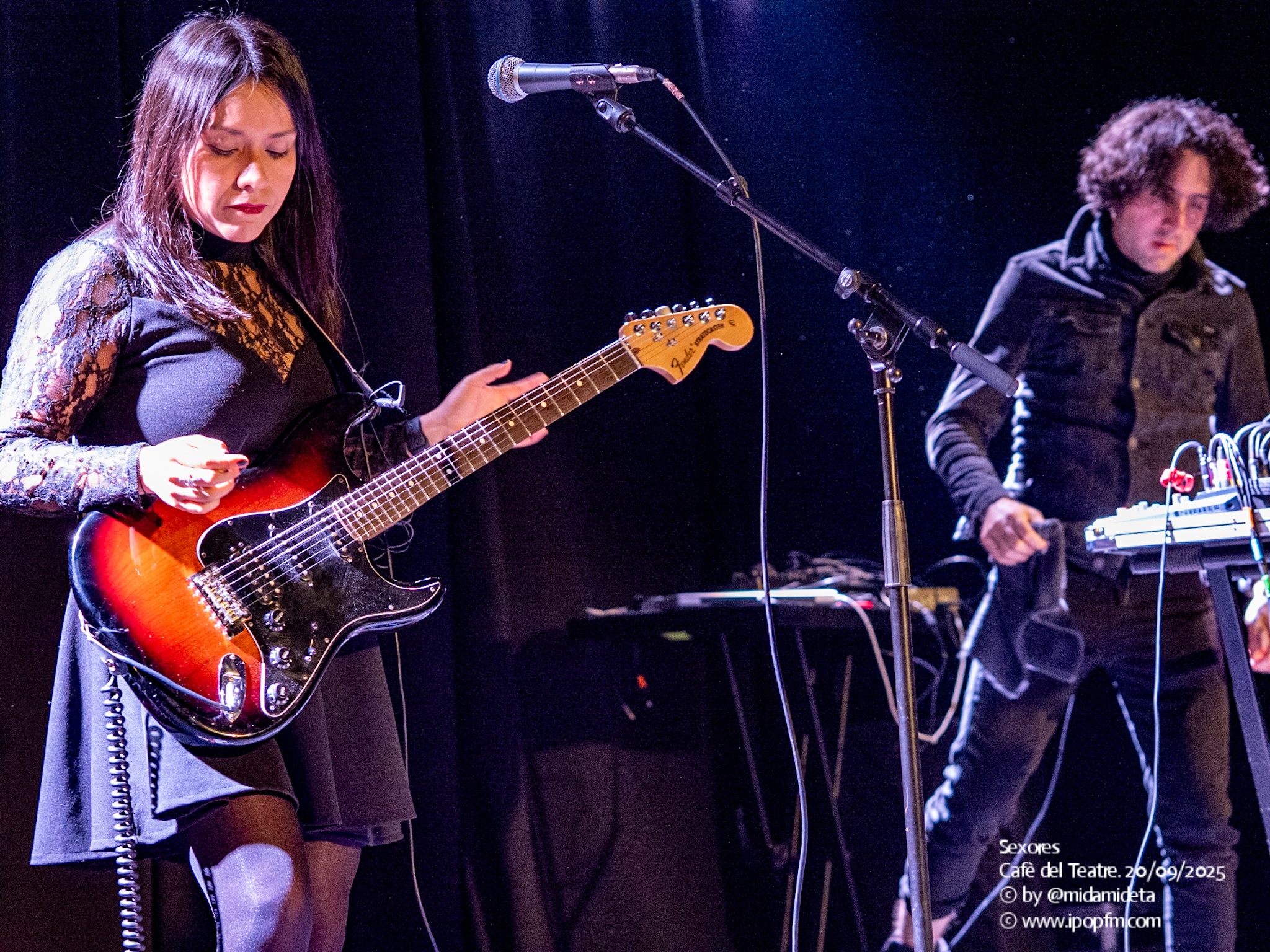 El ambiente estaba ya cargado de expectativa cuando Sexores subieron al escenario. Originarios de Quito, ya con residencia en México, su propuesta de shoegaze + dream pop + electrónica pesada ha ganado cuerpo con álbumes como Historias de Frío, East / West y más recientemente Salamanca y el espectacular recién editado, Sange. Su sonido mezcla muros de guitarra, sintetizadores analógicos y una voz etérea que se desliza entre la distorsión, envolviendo al público en atmósferas que a veces parecen visiones de otro mundo.