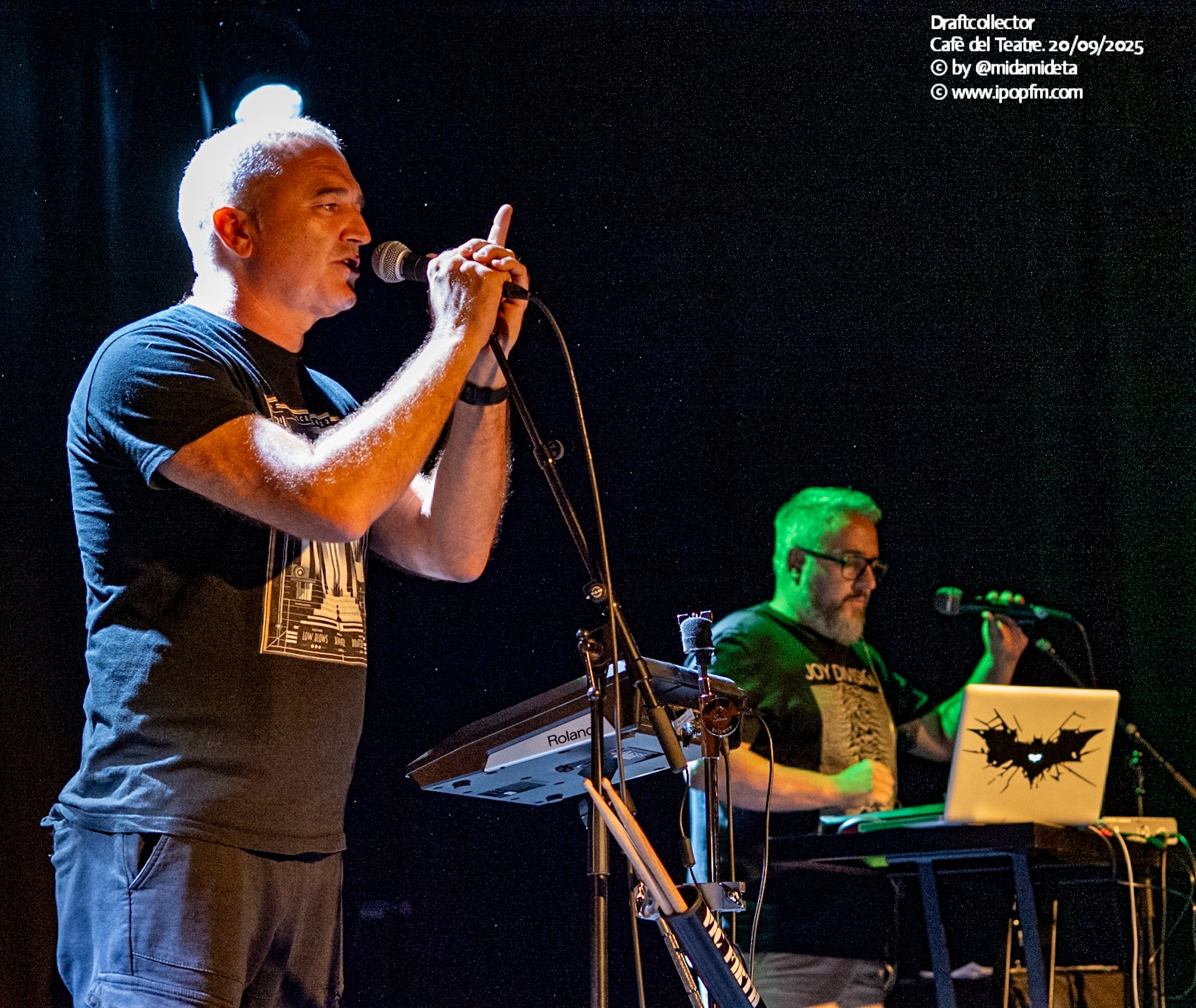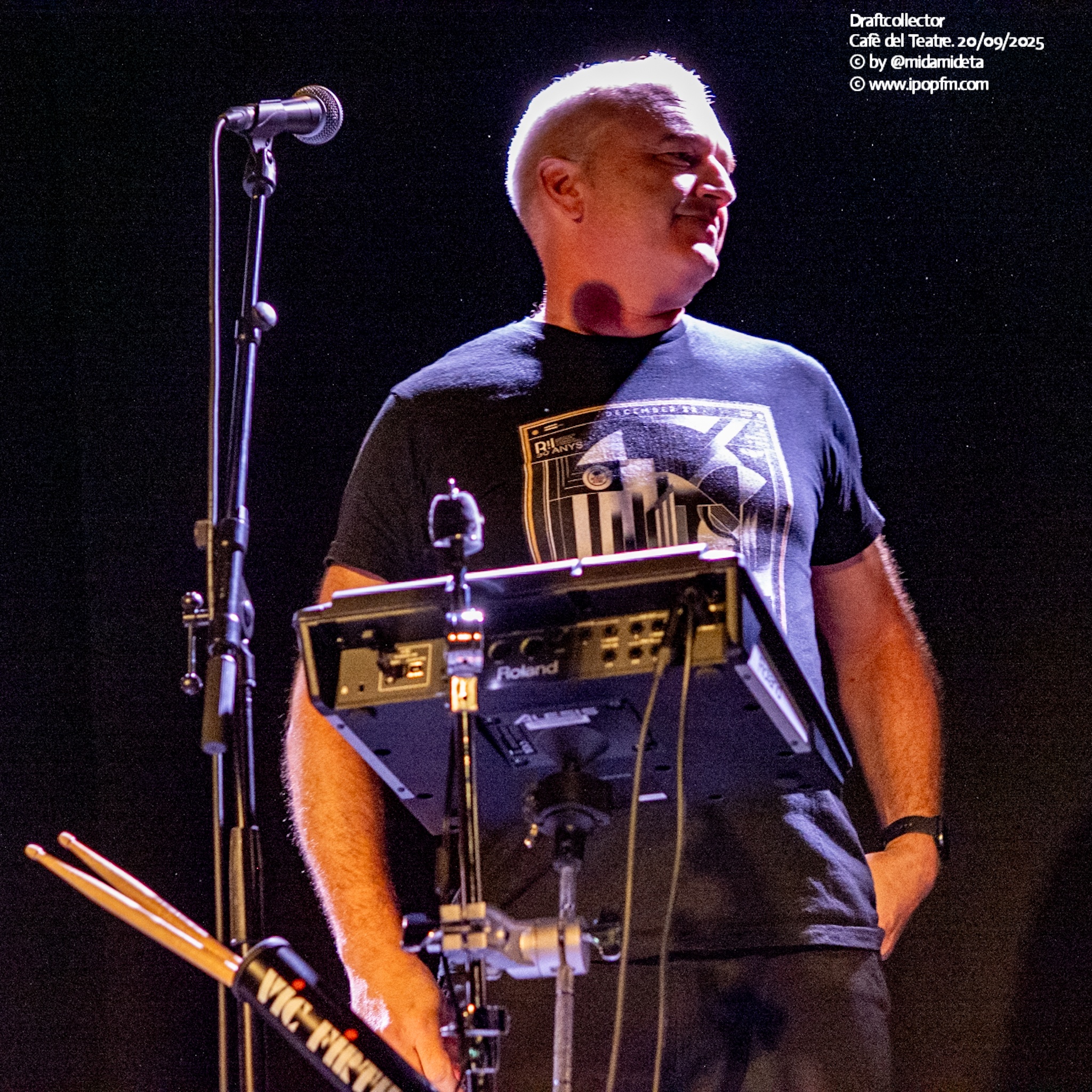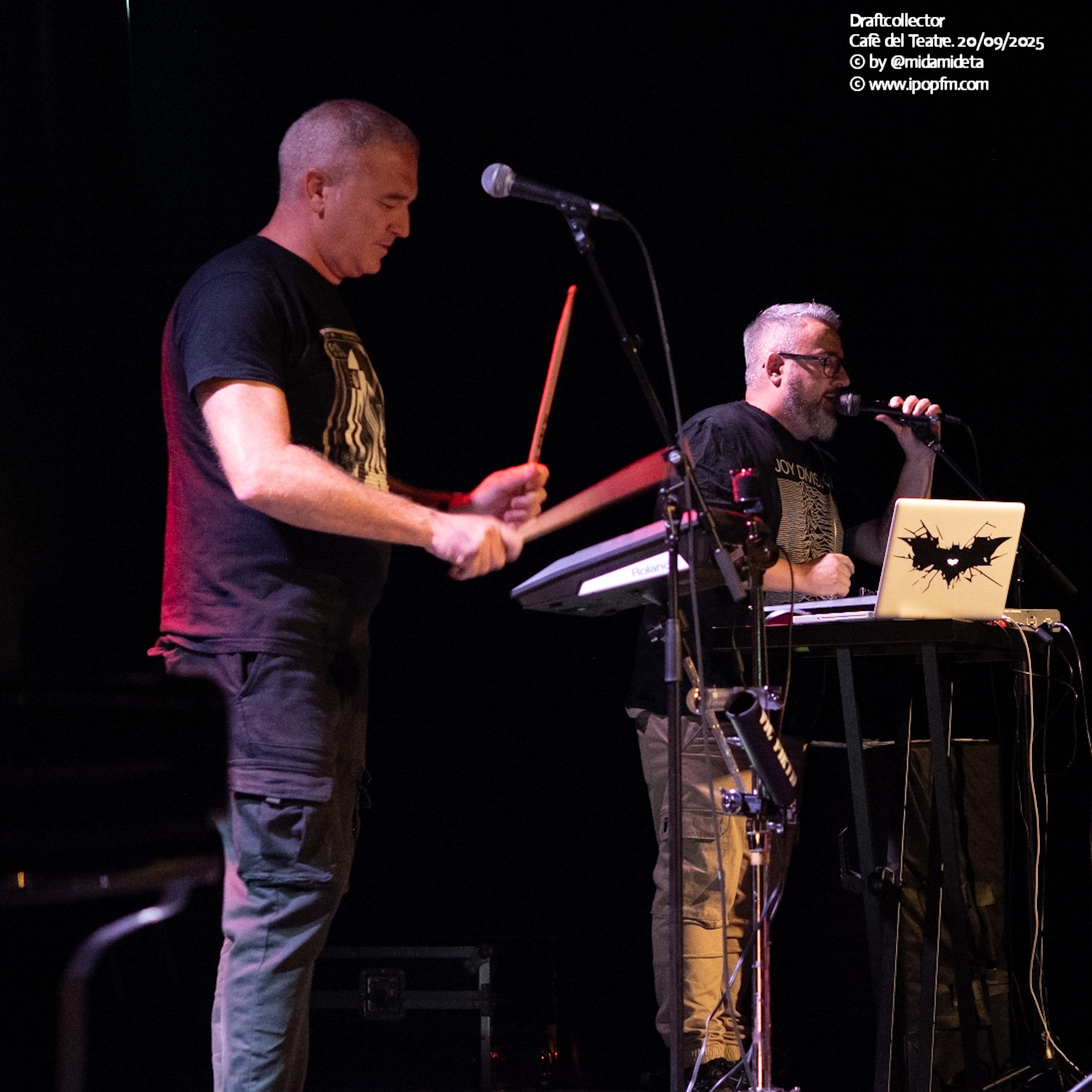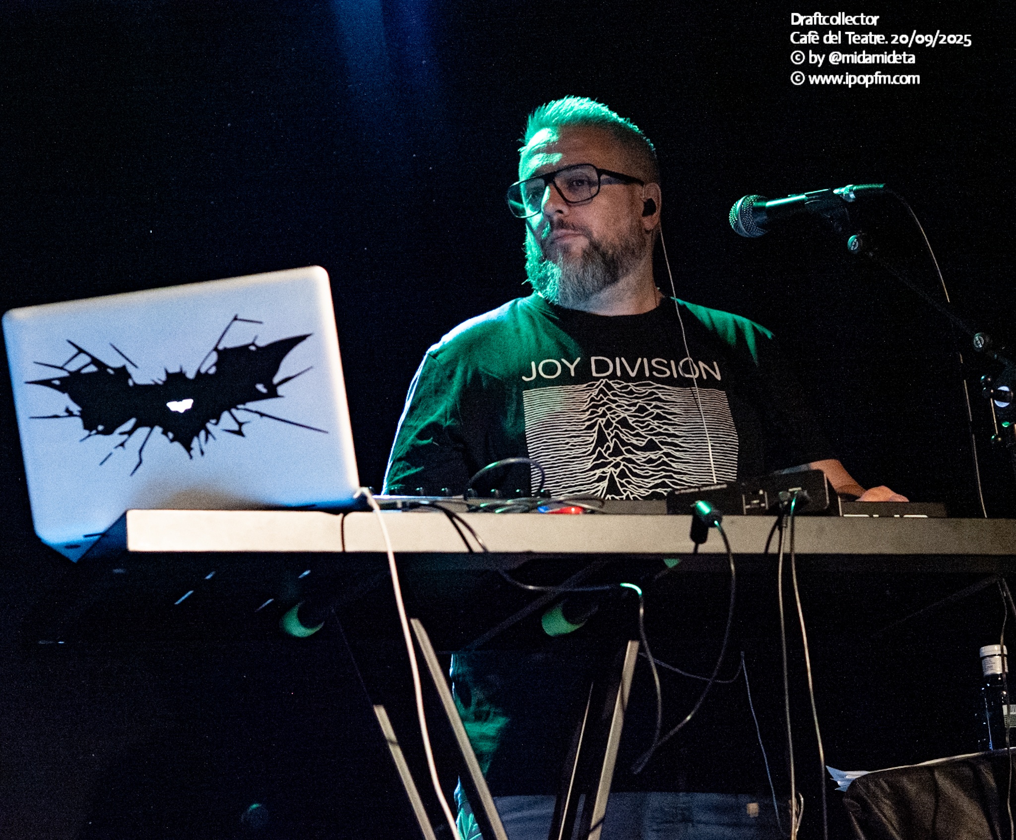 Después, DraftCollector subió al escenario con otra propuesta distinta aunque también con matices sombríos. Su estilo es más cercano al synth-pop / darkwave con influencias claramente letradas y poéticas; en particular “Alone”, basada en un poema de Edgar Allan Poe, demostró su interés por explorar lo existencial desde una sensibilidad musical dramática. En “What U Get” (con ese toque a Chris Isaak) y “Fragance” se sintieron los sintetizadores menos distorsionados, más matizados, creando atmósferas íntimas. “Day 0”, “Lost Boy” y “Desenfocado” mantuvieron el tono reflexivo, mientras que “Golden Shadow” y “Between Shadows” elevaron la tensión sonora. “Aglaya’s Nightmare” sumergió al público en texturas más densas, y cerraron con “Dead Stars”, la versión de Covenant, que fue un momentazo: un broche oscuro, sintético, cargado de energía y que contrastó con la cercanía poética del inicio de su set.