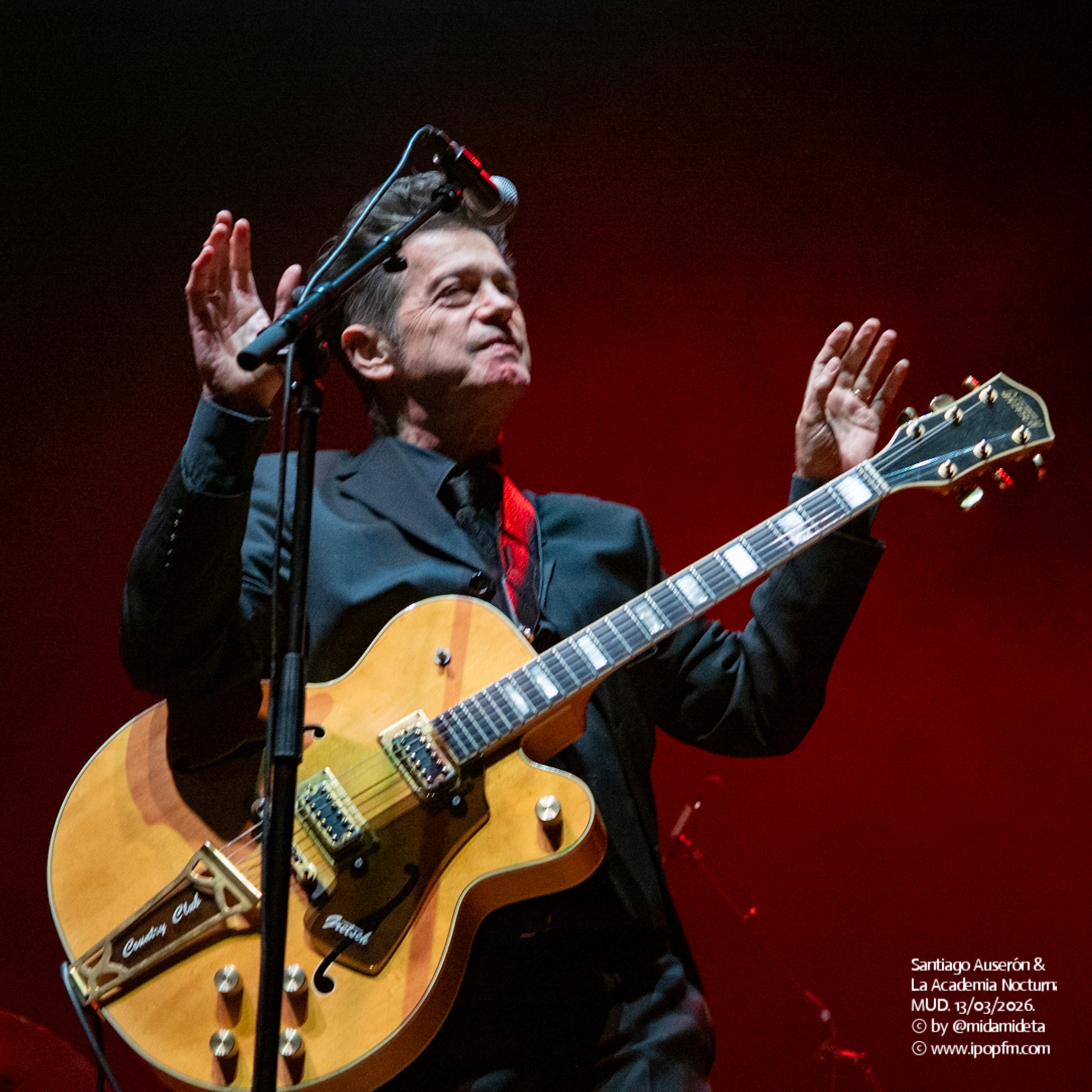 Impecablemente ataviados con sus trajes negros SANTIAGO AUSERON y LA ACADEMIA NOCTURNA, nos trasladaron rápidamente al caribe, concretamente a la Trova Cubana, para después saltar a la América continental y llevarnos en un viaje musical por la rivera del Mississippi, impregnándonos de ese aroma sureño repleto de jazz y rhythm and blues. Pero si por algo se caracteriza esta ACADEMIA NOCTURNA es por su presencia escénica y su talento digno de la época dorada de las Big Bands y el Hollywood Clásico al que también rinden homenaje en este viaje.
