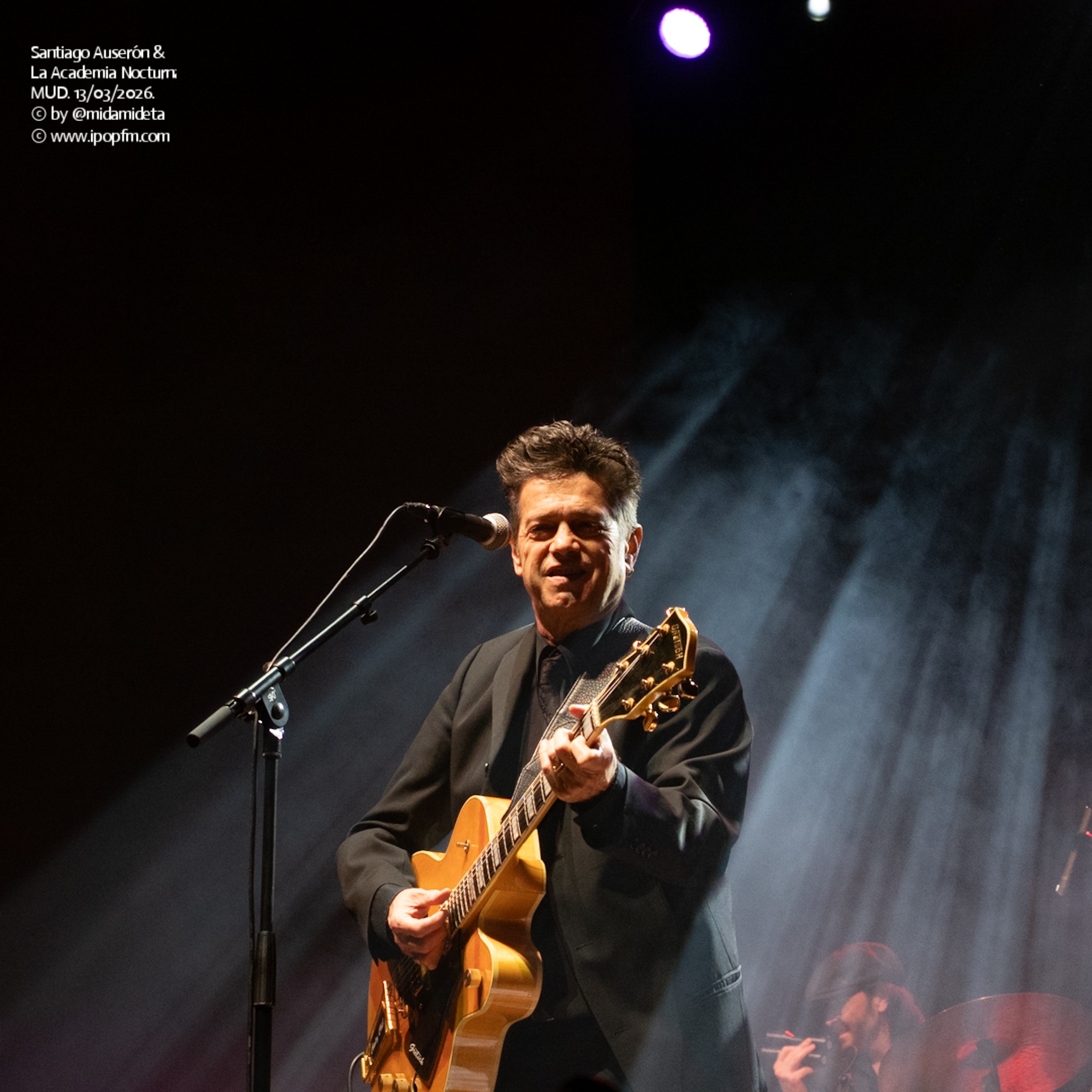 Iniciábamos la jornada en un Auditori Enric Granados, prácticamente con todo el papel vendido, con la enésima reencarnación de SANTIAGO AUSERON, el que fuera junto a su hermano Luis, pieza clave en la historia de la música popular de este país con Radio Futura, vuelve con una nueva aventura, LA ACADEMIA NOCTURNA, donde le acompañan músicos de renombrado prestigio como: Vicenç Solsona, guitarra, Isaac Coll, bajo, Gabriel Amargant, saxo y clarinete, Pere Foved, batería y David Pastor a la trompeta.
