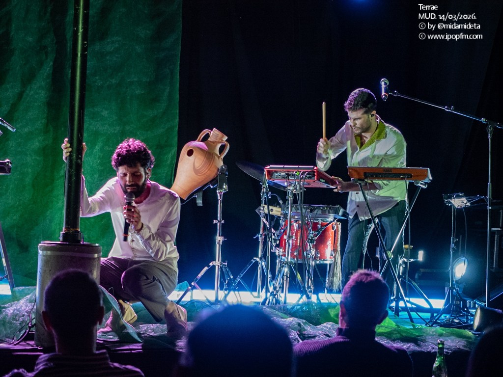 TERRAE, es un proyecto que recorre la Ribera del Ebro hasta su desembocadura en el Mar Mediterráneo, recuperando la memoria histórica de sus habitantes, esa que se transmite en muchos casos por vía oral y que generalmente nos lleva a los momentos más angustiosos de sus vidas. Musicalmente parten de géneros tradicionales, como son el Fandango, la Jota y la copla y combinan sus instrumentos clásicos, panderos, panderetas y castañuelas, con teclados y baterías electrónicas, pads, cajas de ritmo, para construir un universo musical de excelencia, donde cada nota y cada sonido se percibe de forma cristalina, donde nada falta y nada sobra. En definitiva, una experiencia sensorial imperdible y a la que desde IPOP prometemos no perder la pista.