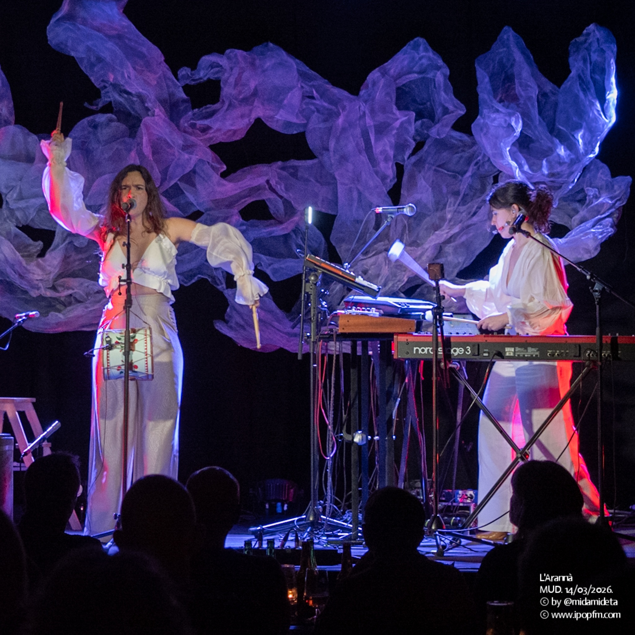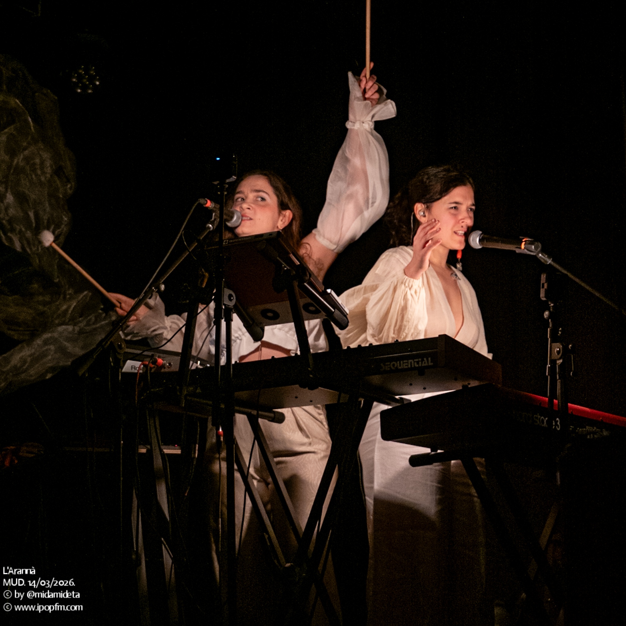 Y de la Ribera del Ebro, pasamos a la Islas Pitiusas y es que L’ARANNÀ dúo formado por Anna Sala y Lara Magrinyà, recuperan la tradición de Ibiza y Formentera en general y del peculiarísimo y antiquísimo “Cant Redoblat” en particular. Musicalmente combinan elementos tradicionales del folclore isleño como tambores y castañuelas, con instrumentación electrónica y que por momentos nos lleva a recuerdos de Mike Oldfield y otros compositores de la electrónica sinfónica, otros pasajes se tiñen con bases de Trance de principios del siglo XXI e incluso recurren al four to the floor para llevarnos momentáneamente a la pista de baile. Maravillosas en la interpretación vocal y escénica cautivaron a todo el público presente.